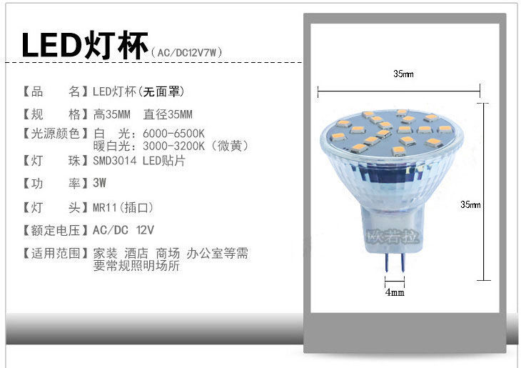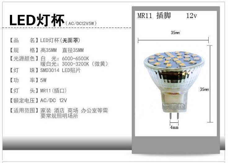 LED spotlight smd lamp cup MR16MR11 GU10 pin 3 W5W light bulb 220 V replace 12 V halogen lamp cup pure white light +MR11 220V 3W