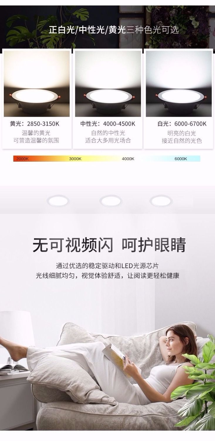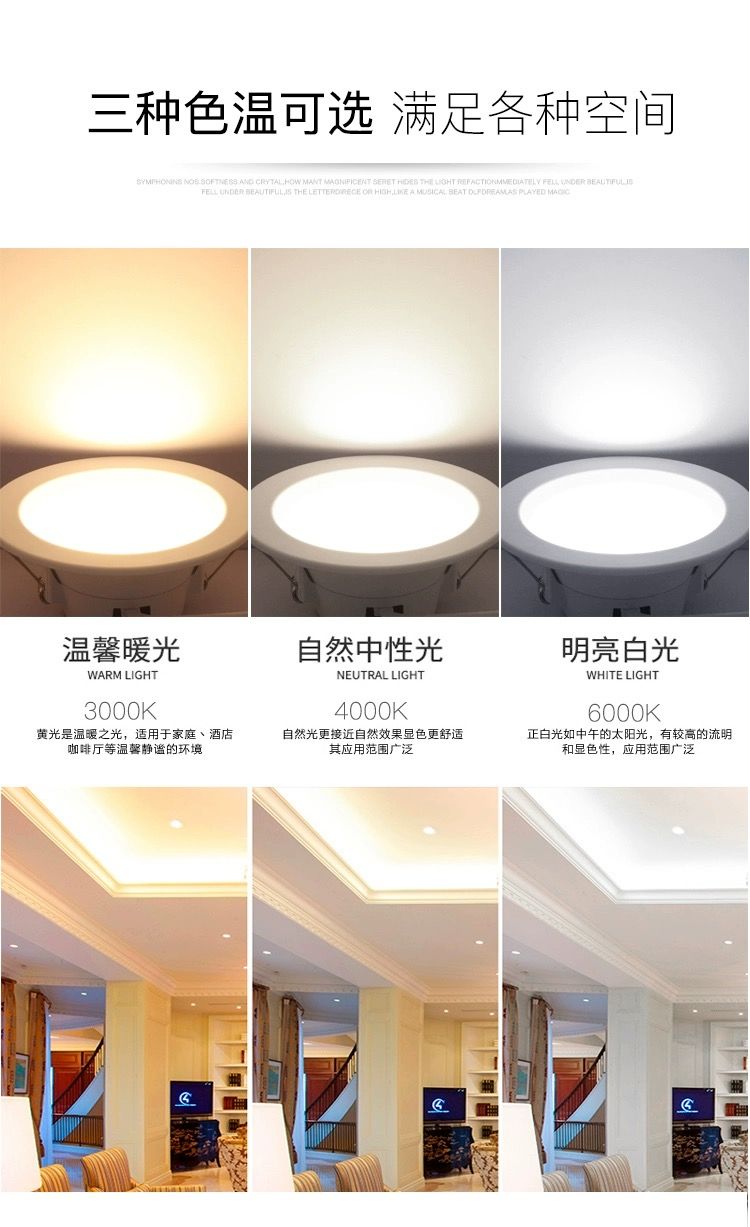 led downlight spotlight hole light ultra-thin ceiling light opening aisle living room embedded project 5 /9/12/18watts classic: 5 W opening 6.5-8.5 CM+white light 6000 K