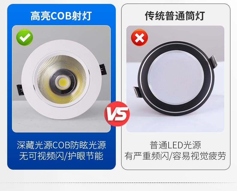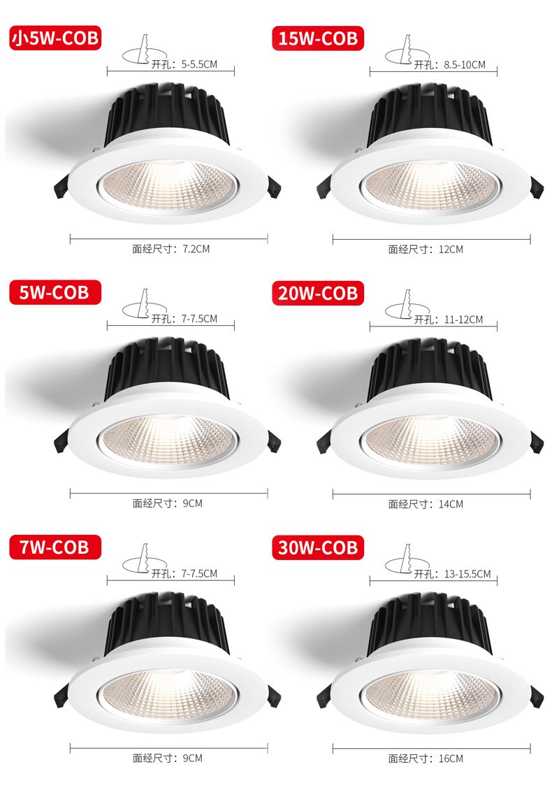 COB spotlight led ceiling lamp embedded living room chandelier background wall bull eye hole lamp 3 w5w15w hole light downlight COB anti-glare 5 W【 opening 7-8 cm】+white light
