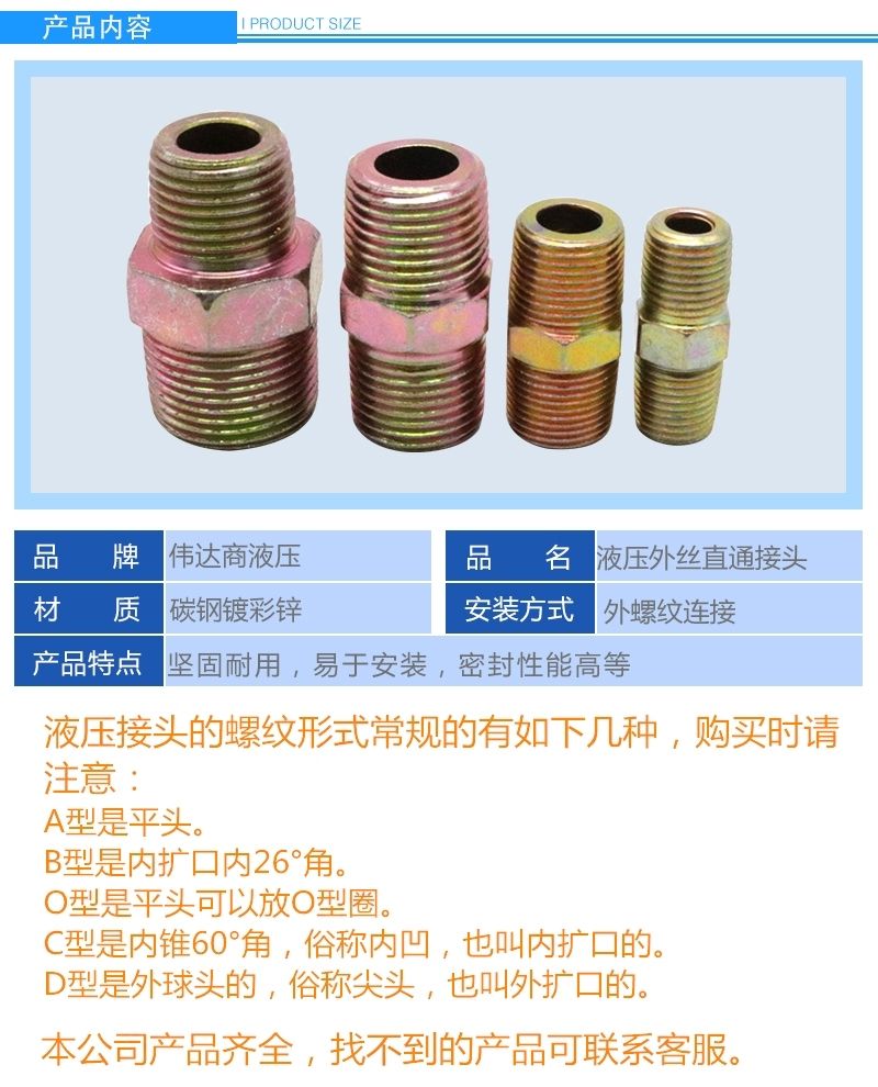 hydraulic oil nozzle british screw direct 1 point 2 point 4 point 6 point high pressure oil pipe joint conical joint flat head A-- flat head A+1/8(110 points