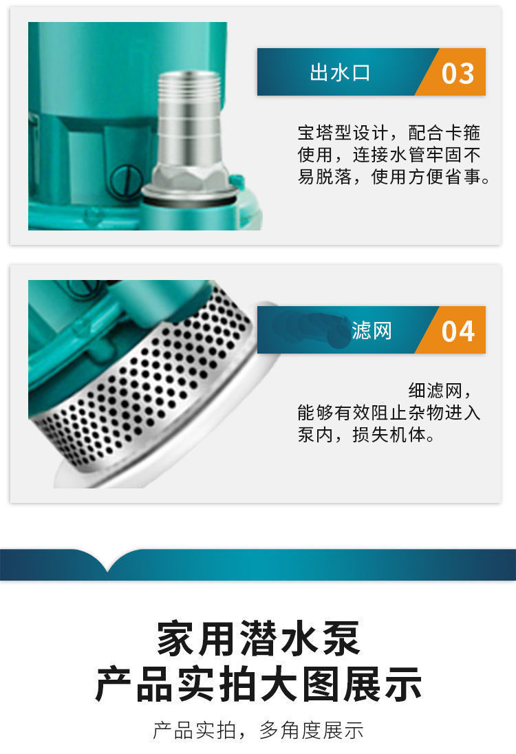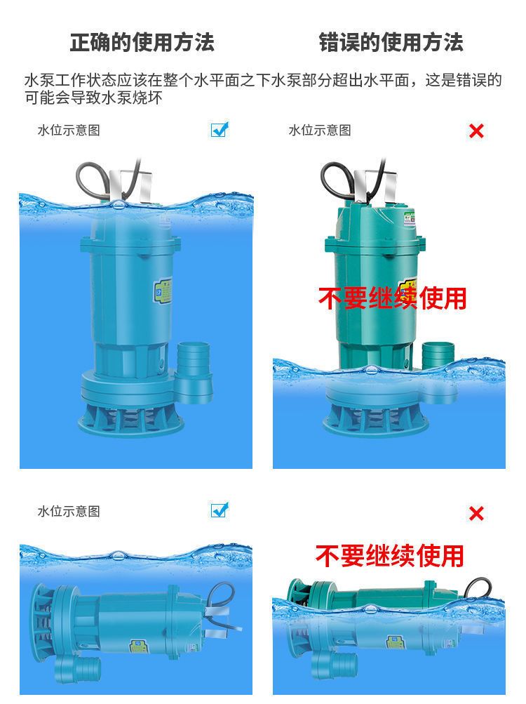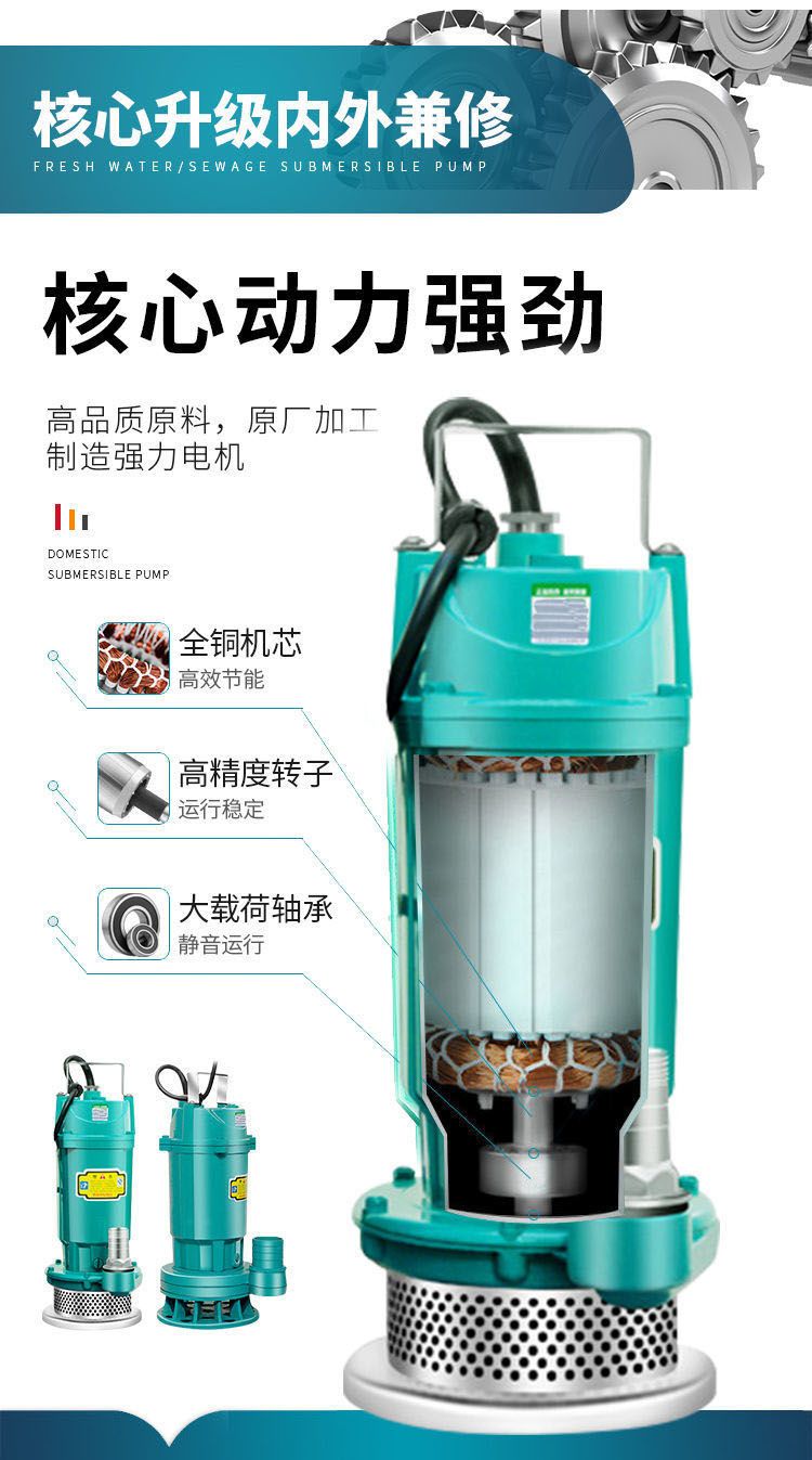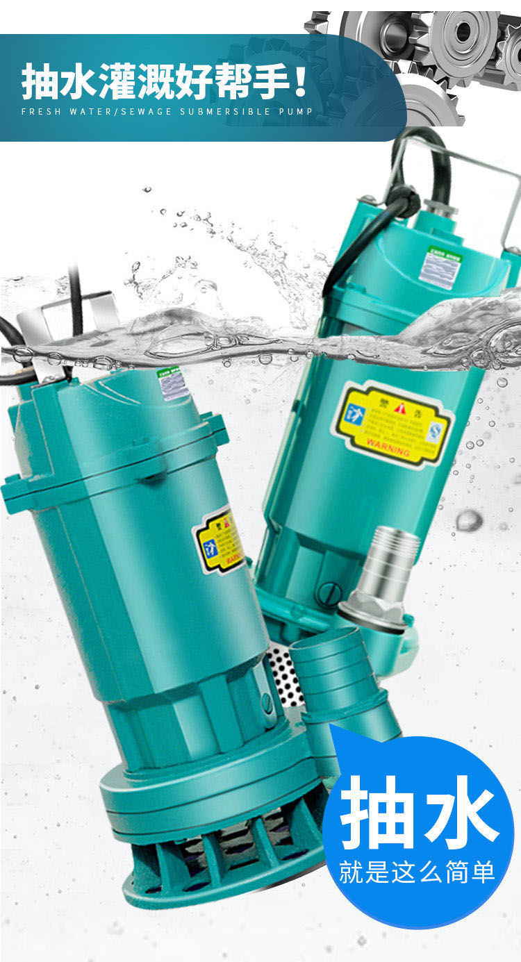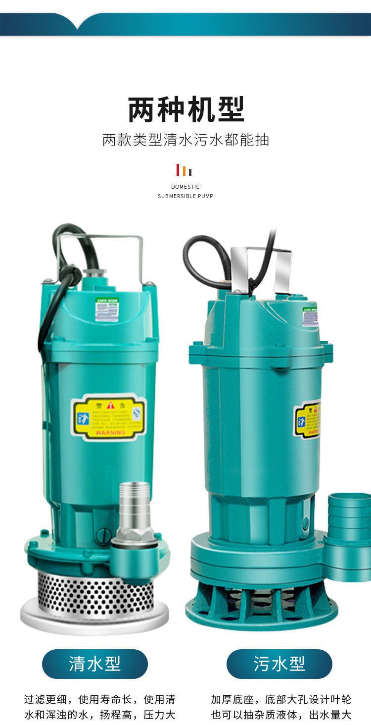 submersible pump 220 v sewage pump small pump high lift agricultural irrigation sewage pump [clean water pump] 370 W1 3-meter-long noodle