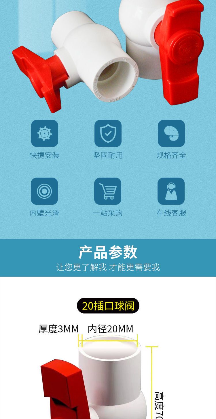 pvc ball valve 20 25 32 40 50 63 75 90 socket threaded internal thread water pipe switch plastic valve 20 socket ball valve (adhesive 4 points)