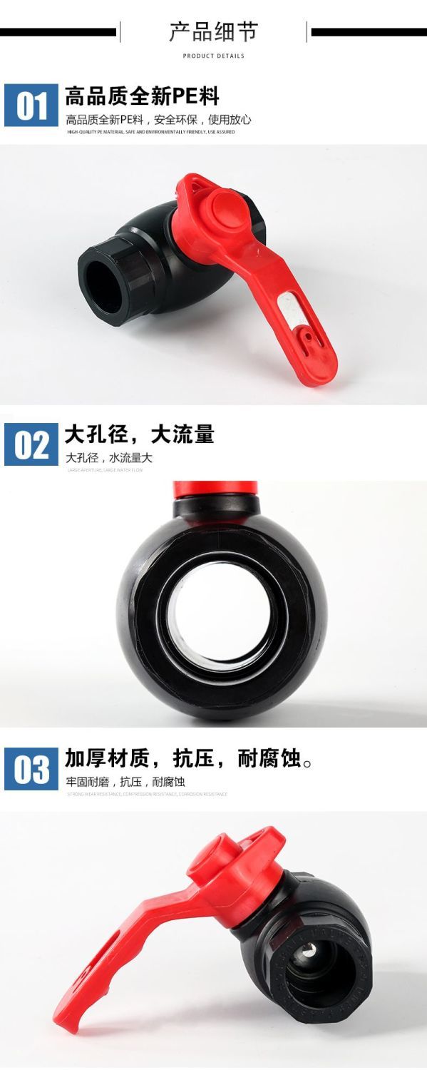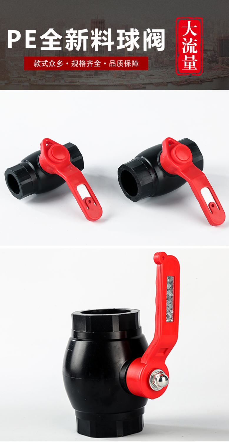 PE water pipe accessories PE ball valve switch hot melt 20 25 32 50 63 large flow 4 points 6 points large aperture valve PE20(4 large flow ball valve thickening