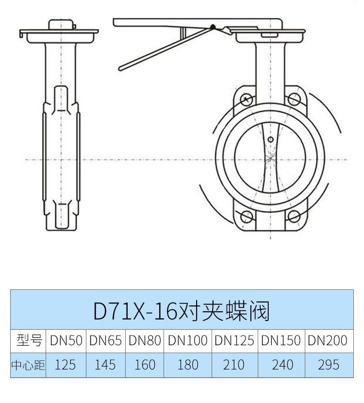 D71X-16 handle wafer butterfly valve wafer type manual butterfly valve DN40 50 65 80 100 125 150 national standard economic type +DN40
