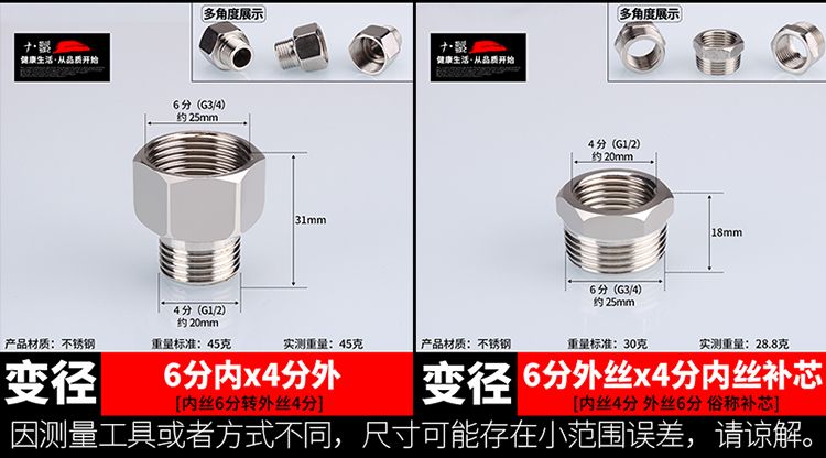 stainless steel joint inner thread direct inner and outer thread to thread tee elbow 6 points to 4 points reducer plumbing water pipe accessories 4 points to thread 38 grams