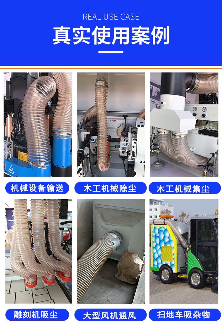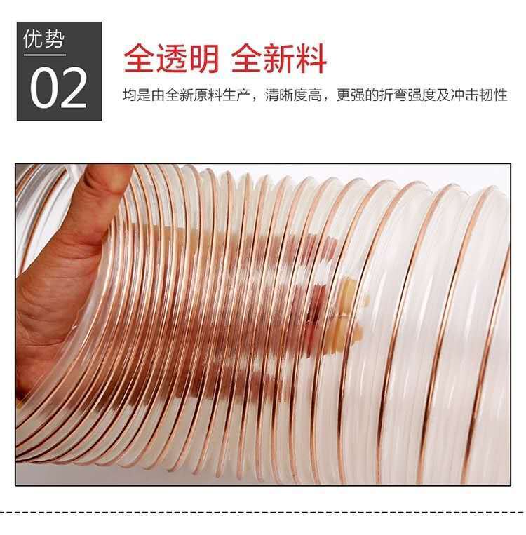 pu woodworking vacuum hose polyurethane duct copper-plated steel wire hose transparent telescopic fan tube industrial ventilation duct inner diameter 20 mm(price per meter)