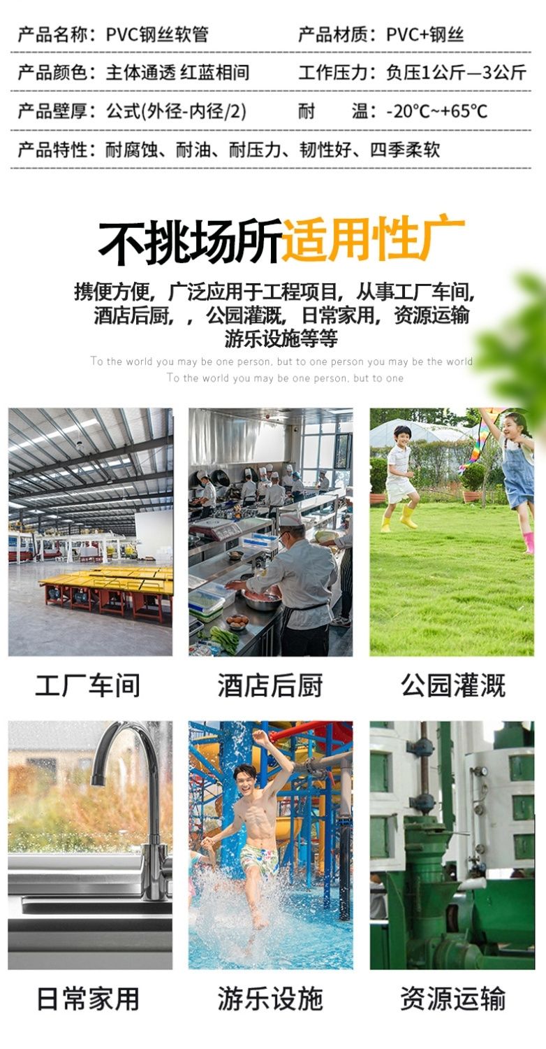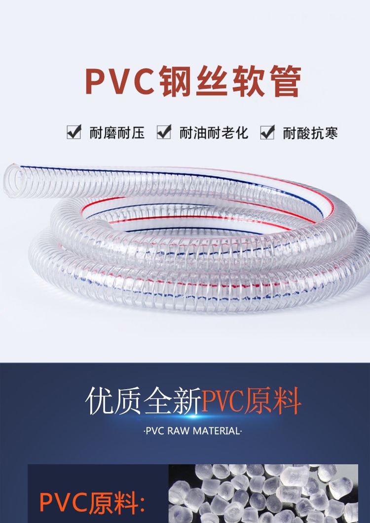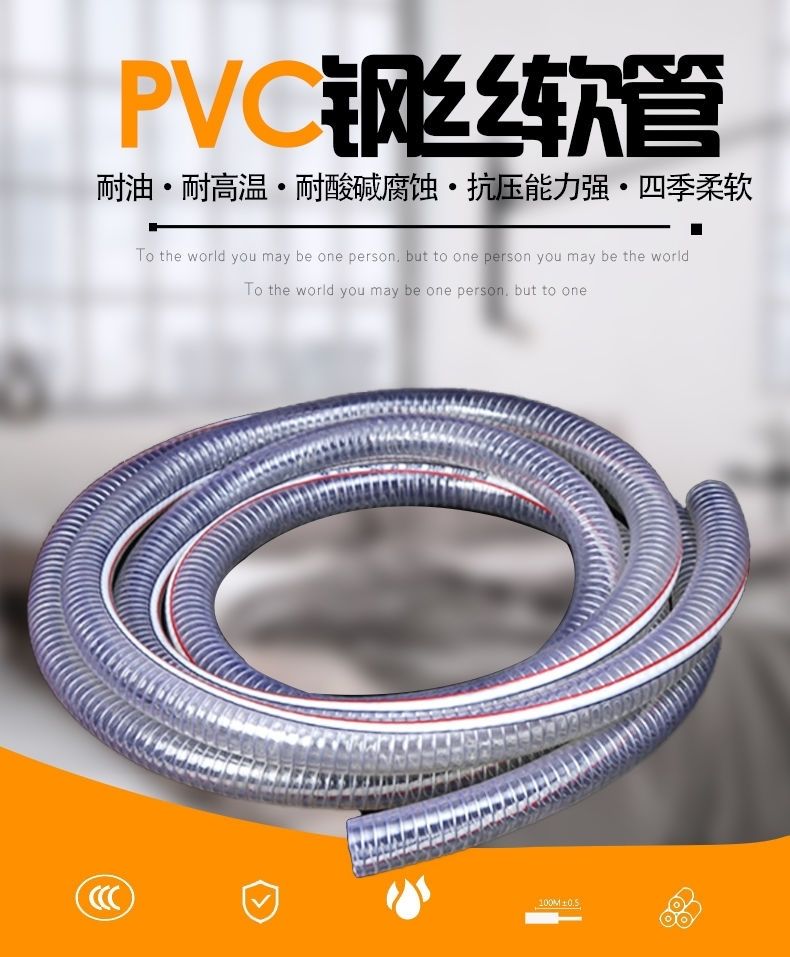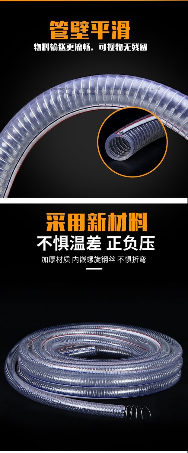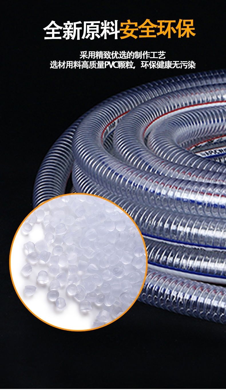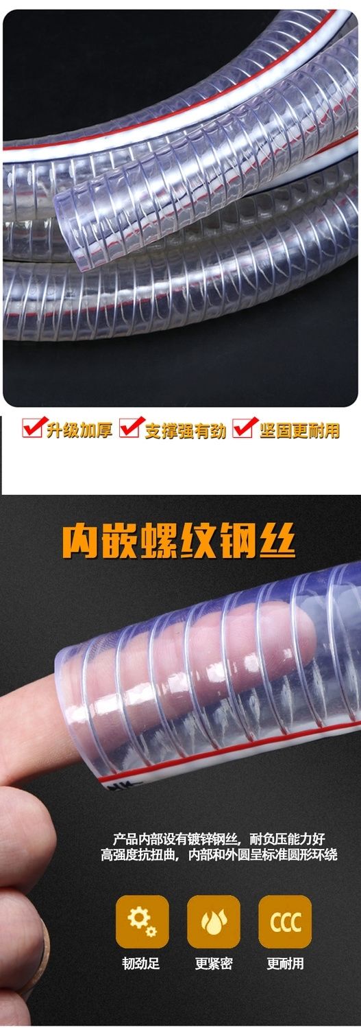 PVC steel wire tube transparent hose plastic one inch water pipe thickened oil pipe resistant to high pressure and high temperature 4-point vacuum tube inner diameter 10 mm1 rice price