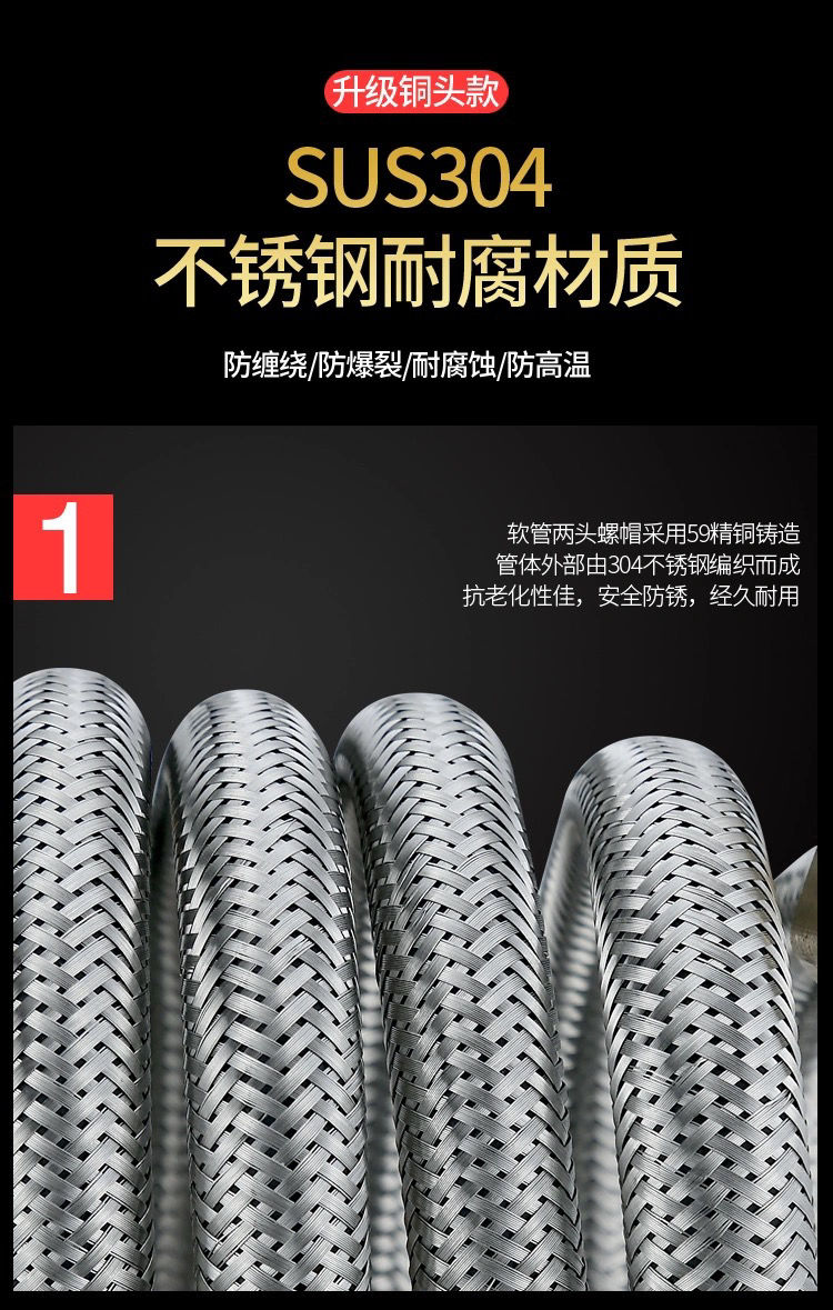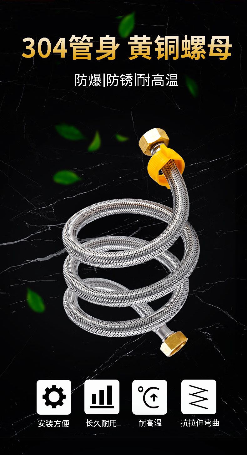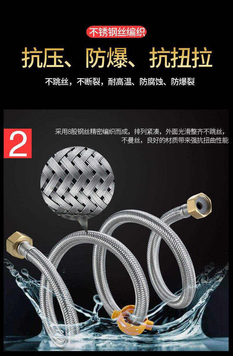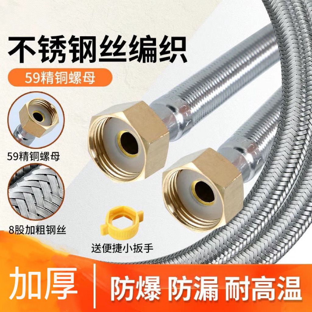 304stainless steel braided hose water heater toilet high pressure explosion-proof 4 points hot and cold extended water inlet hose connecting pipe 304 braided steel cap explosion-proof model (30-year warranty) +10centimeter