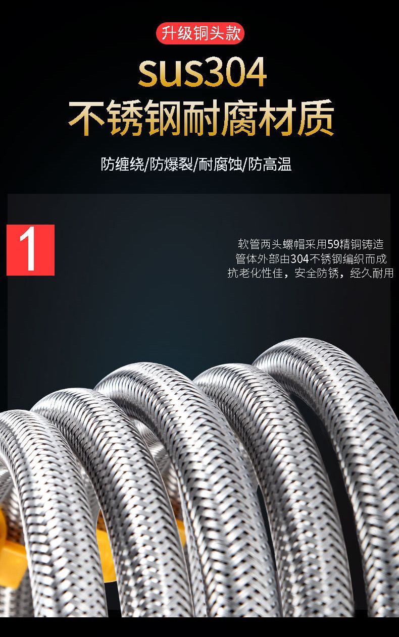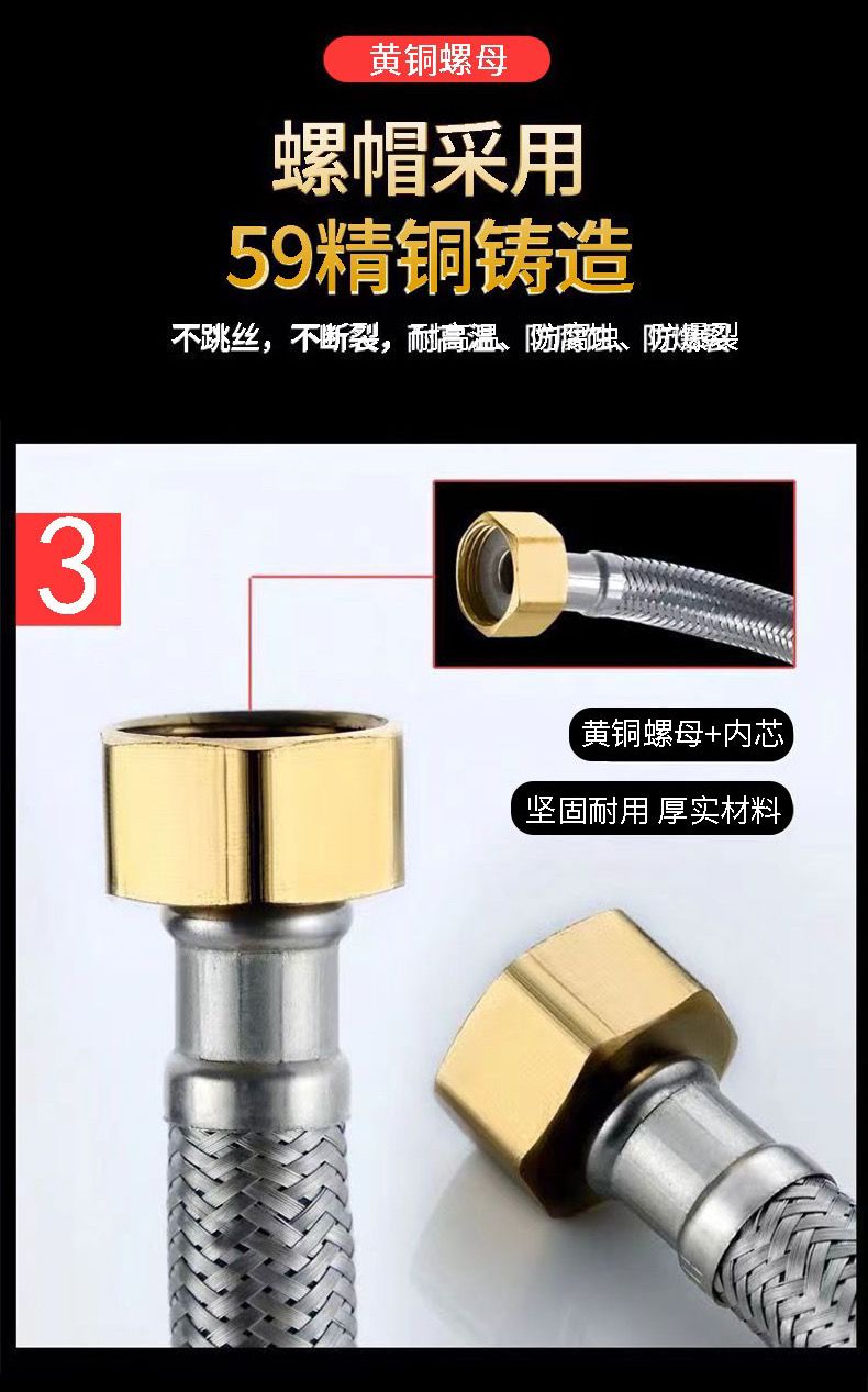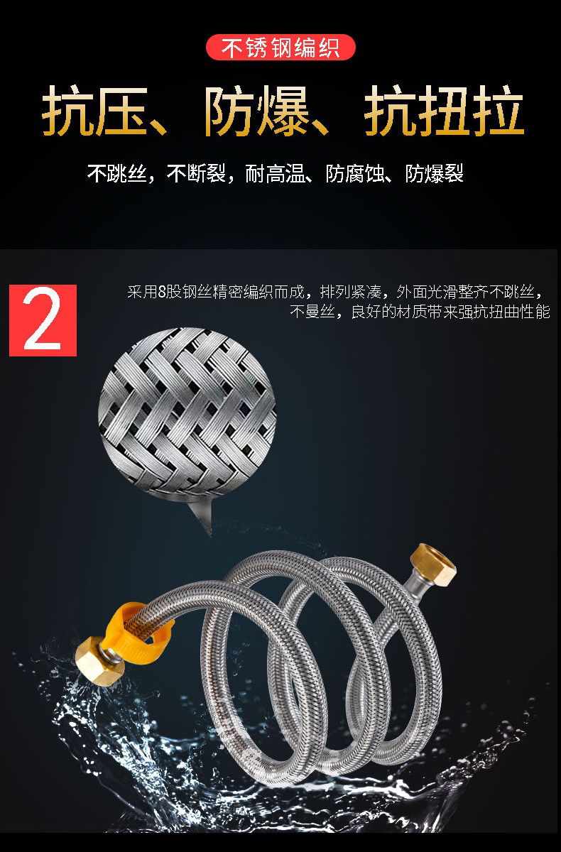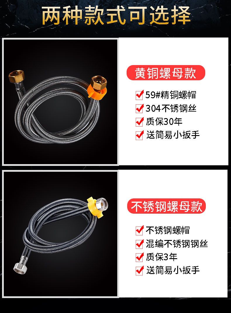 304stainless steel braided hose water heater toilet high pressure explosion-proof 4 points hot and cold extended water inlet hose connecting pipe 304 braided steel cap explosion-proof model (30-year warranty) +10centimeter