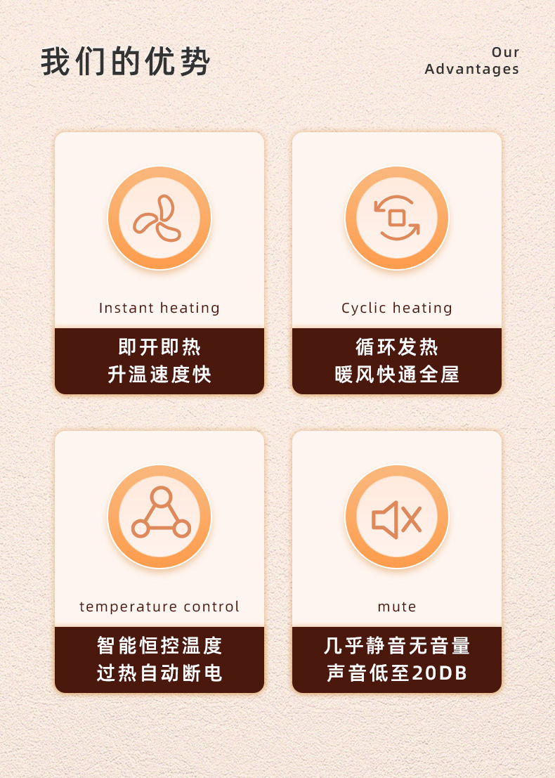 制热很快,暖风机很好,取暖器好,加热很快,没有噪音,暖和,风力很大,取暖效果很好,方便,小巧,风扇很好,实用,物流很快,服务态度很好,质量很好,有档位,功能齐全,正品,精致,包装仔细。建议大家买电器一定要选这家这种质量好的,价格贵点,总比百十块人用的安心安全,用着让人舒心,这个品牌的机器实在是太给力了