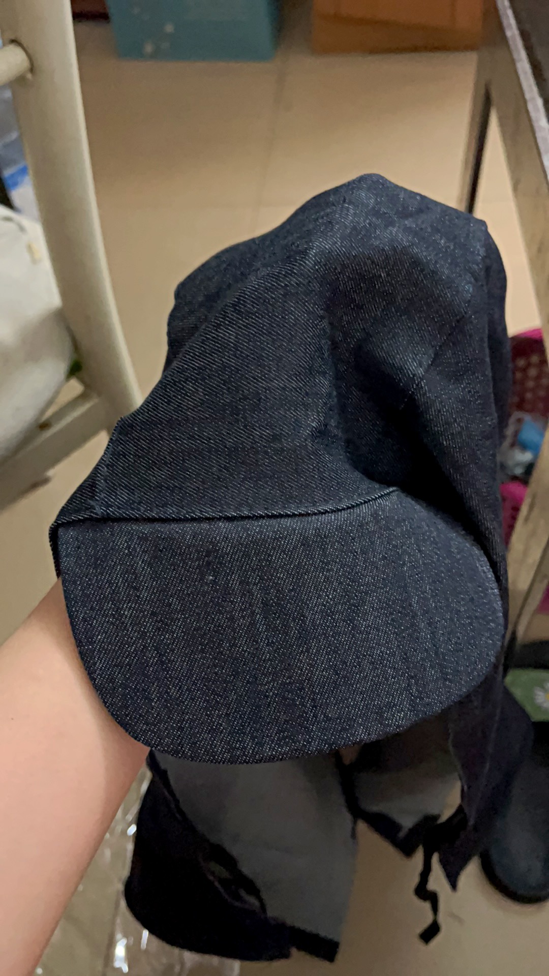 牛仔开口批肩帽,料子厚实,防尘防晒有效果,设计款式可以,待做工更完美。