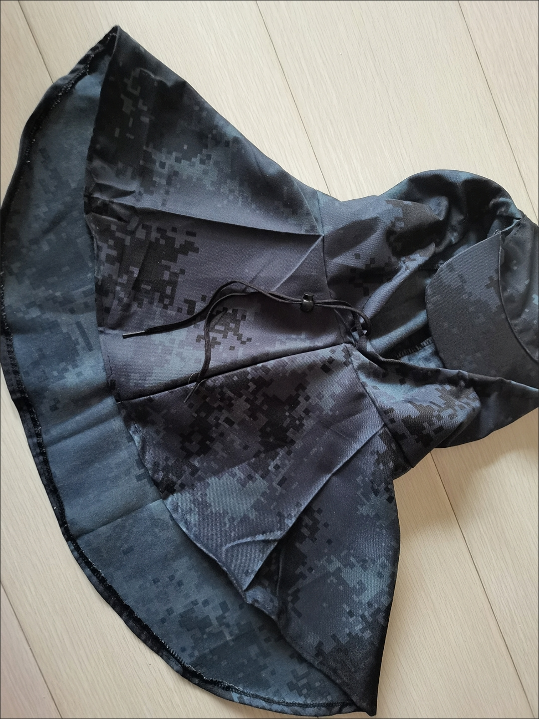 面料不错,做工也很好,而且够大遮挡的面积很大,带子一拉很严实,建议有需要的伙伴连同面罩一起购买