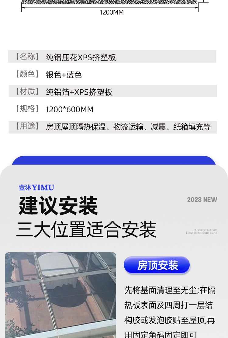 sun room insulation board roof sun protection indoor and outdoor wall insulation board pure aluminum foil extruded board ceiling material B grade flame retardant extruded board [single-sided aluminum board] high density +2cm thickness: 1.2 meters *0.6thickened rice