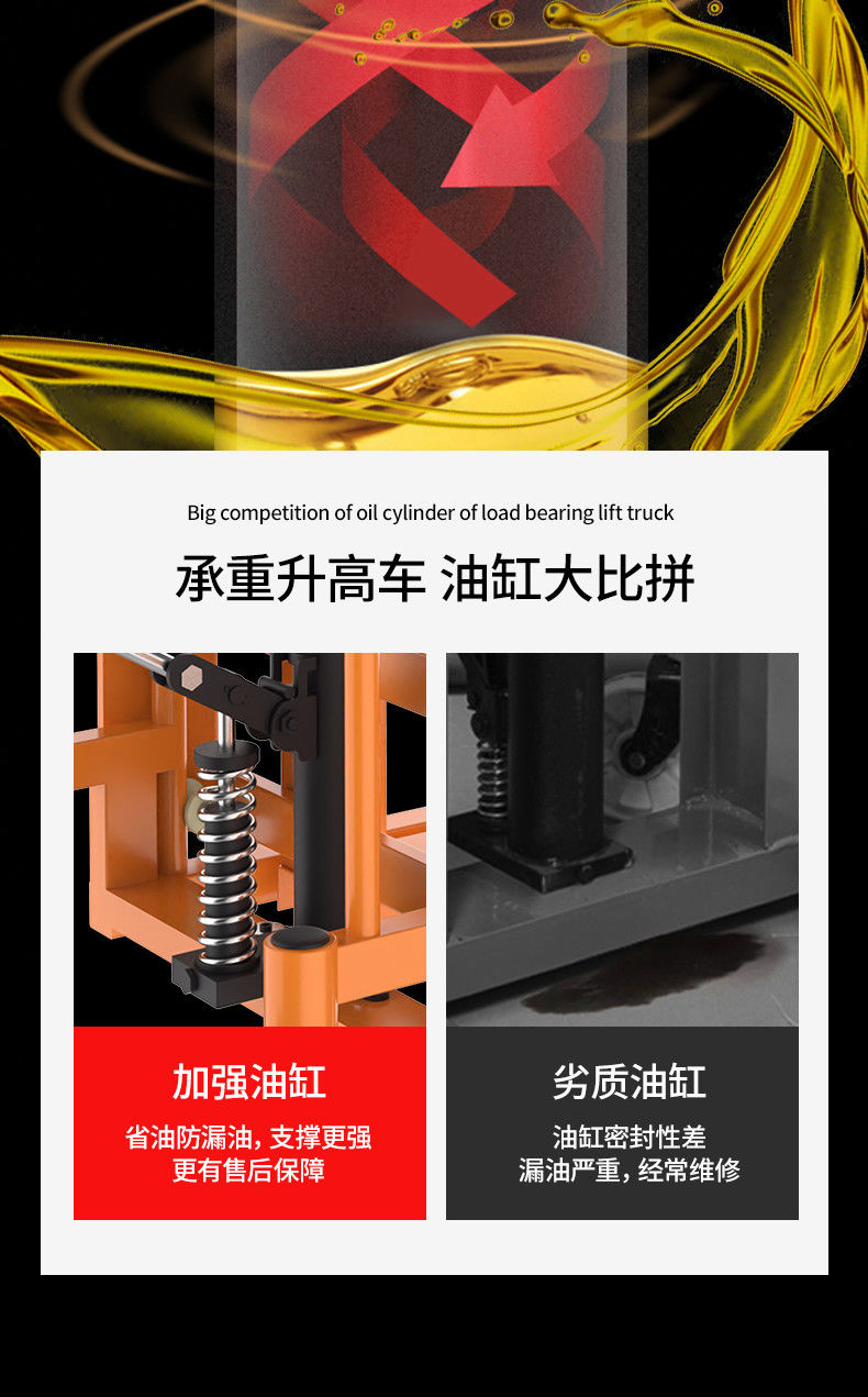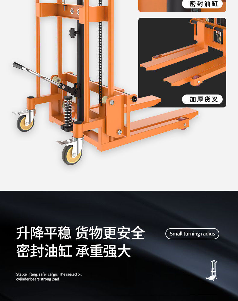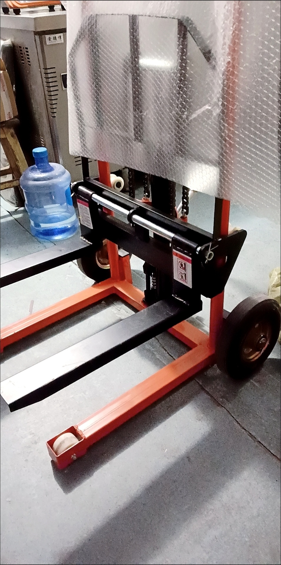 hydraulic forklift unloading artifact transporter manual small lift truck elevated cattle type forklift stacker cargo fork type - enlarged wheel height 0.9 meters 200 KG