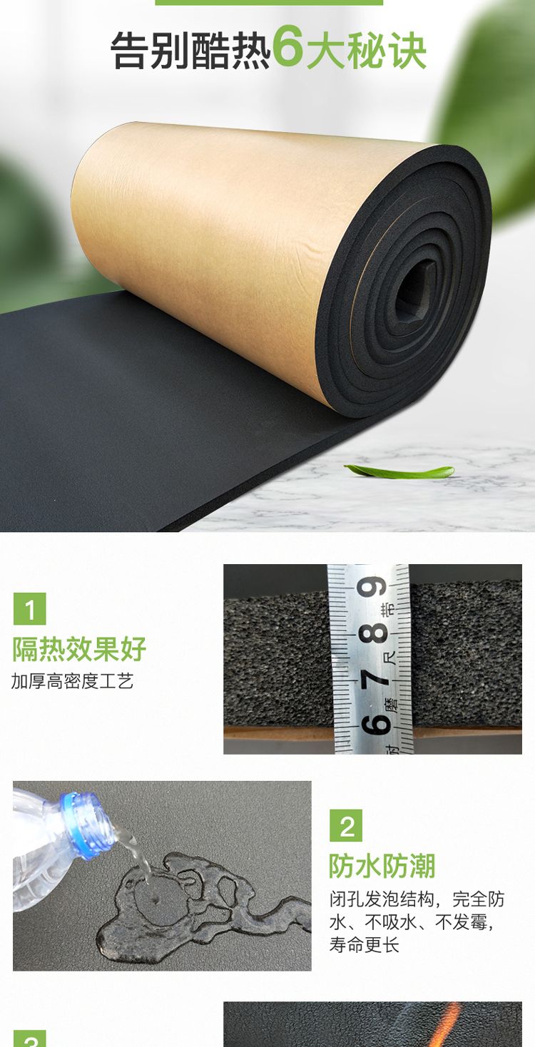 high-density rubber-plastic board insulation board insulation board high temperature resistant roof roof sun room insulation cotton insulation cotton sunscreen black composite version 50 mm self-adhesive 1 square meter