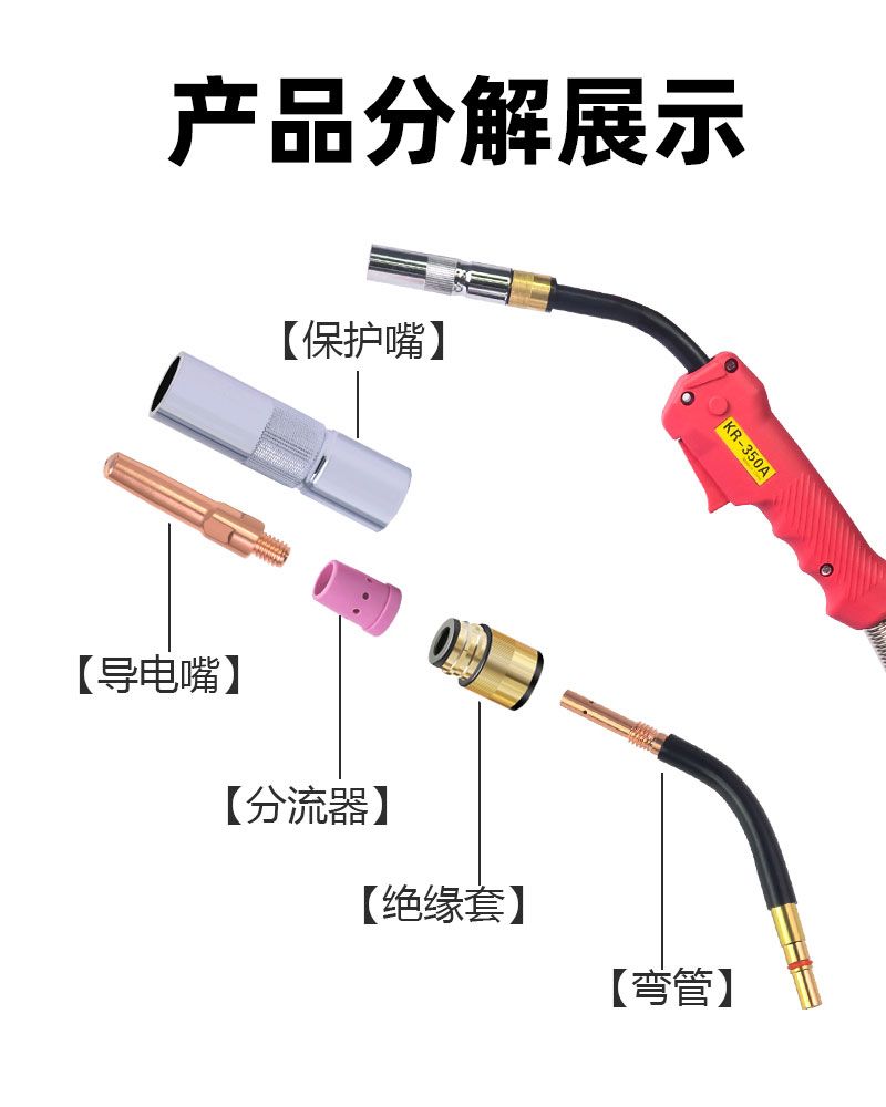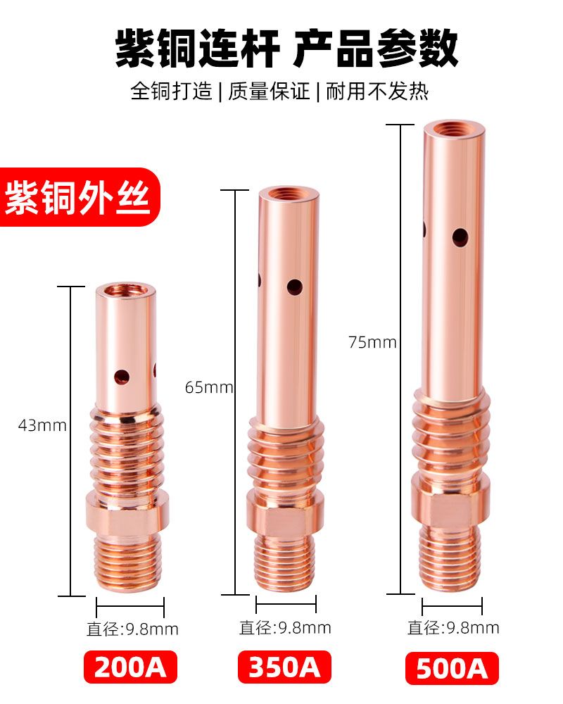 500A two-protection welding gun connecting rod 200 a350A copper thickened connecting rod outer wire conductive nozzle seat two welding accessories brass 200 A external thread connecting rod (5 pieces)