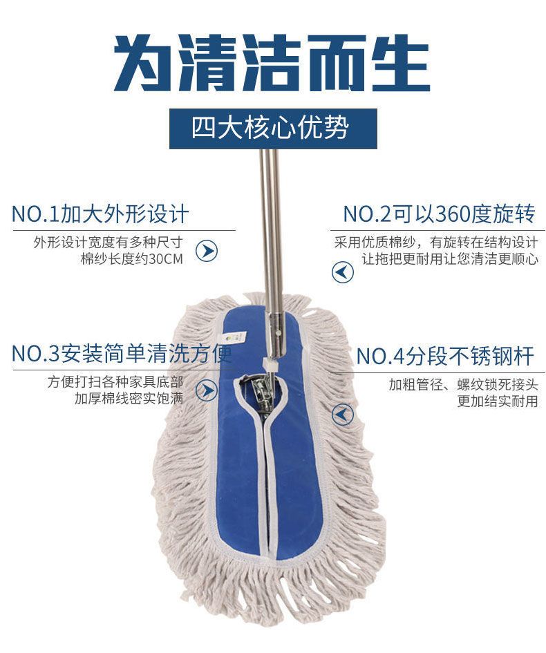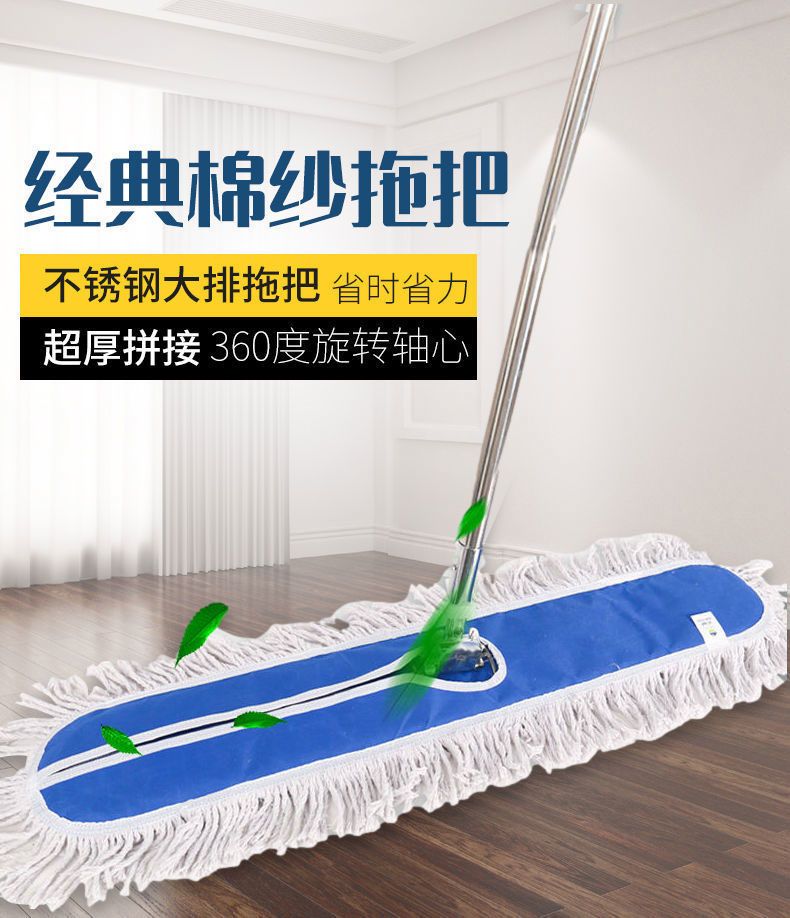 flat mop large dust push hotel cleaning one mop clean replacement cloth lazy artifact shopping mall special mop thickened stainless steel rod complete set [complete set] +40CM