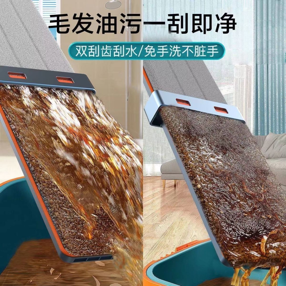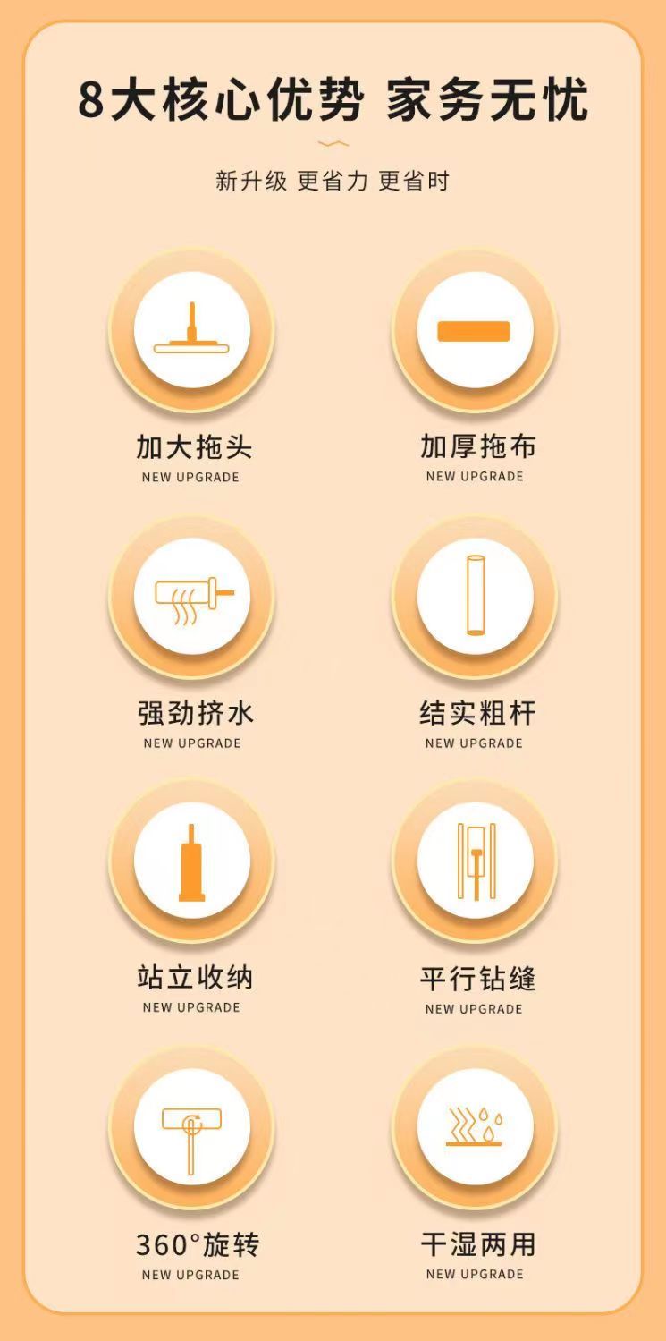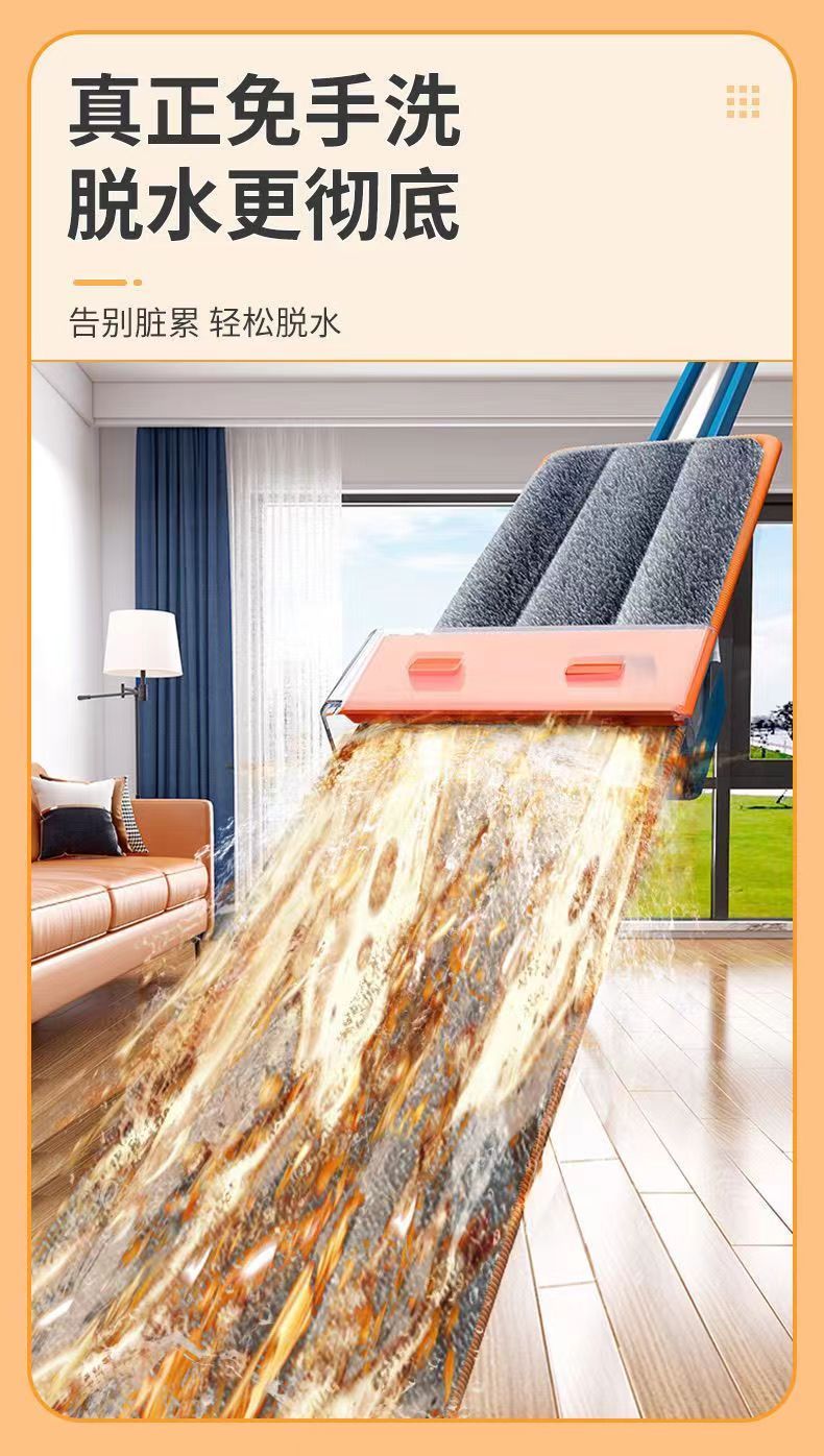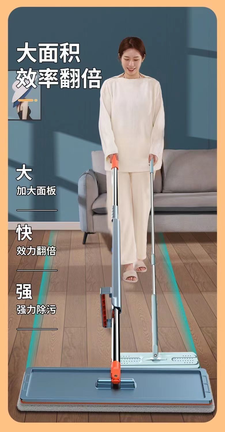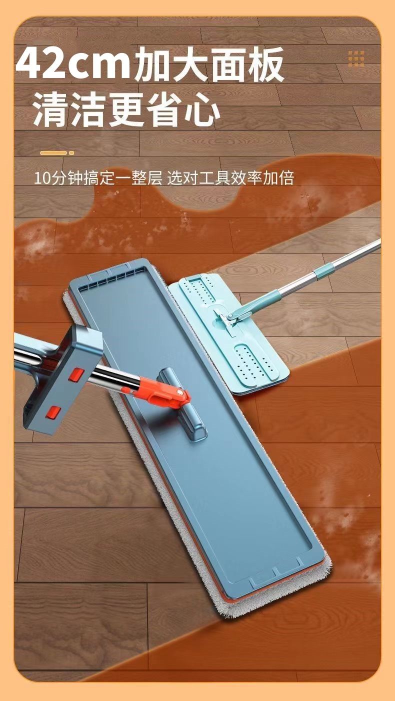 genuine large mop one-mop clean wet and dry dual-purpose lazy mop mop dormitory bathroom mop 42 CM flagship /1cloth] 128 thick rod double scraper