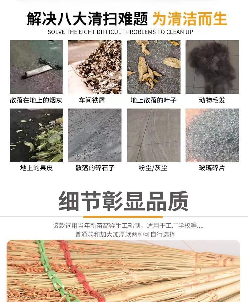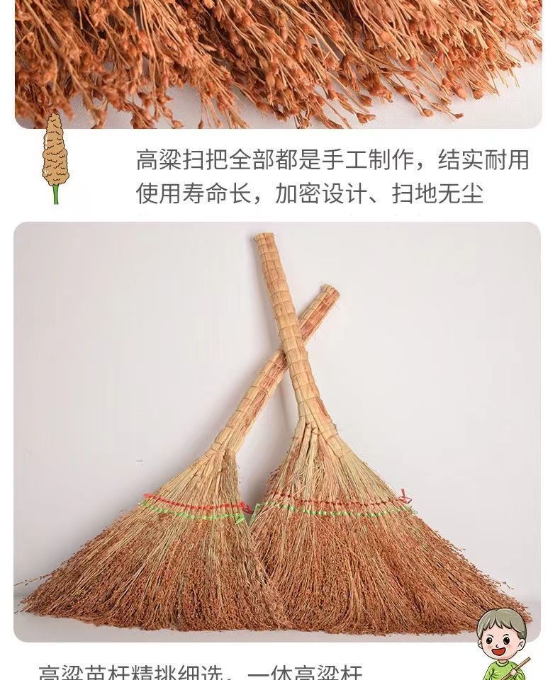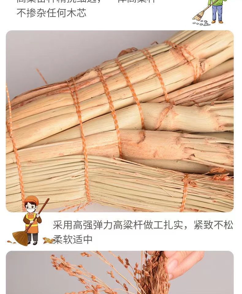 sorghum broom old-fashioned pure hand-made thickened broom outdoor floor broom factory cleaning school sorghum (excellent +thick) +buy one get one free [2 pieces in total]