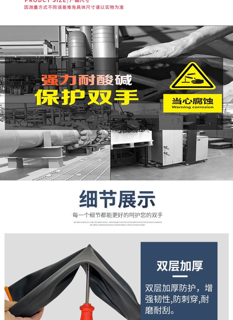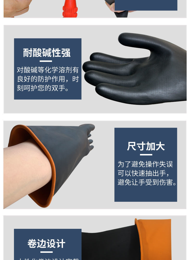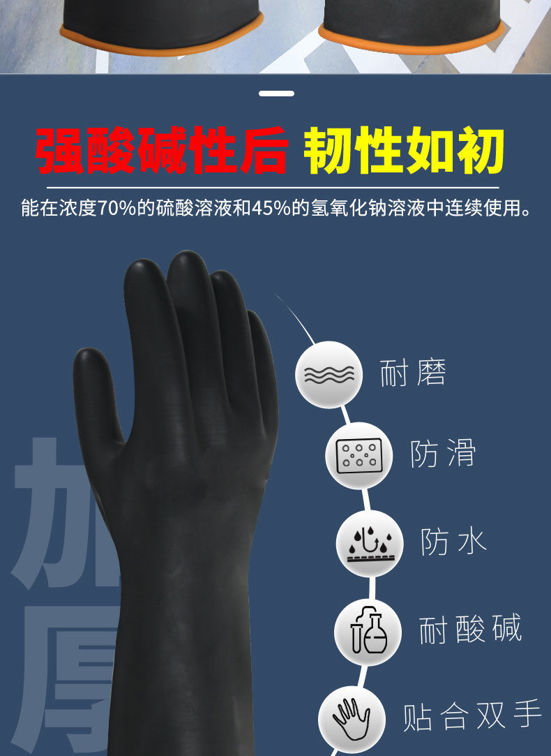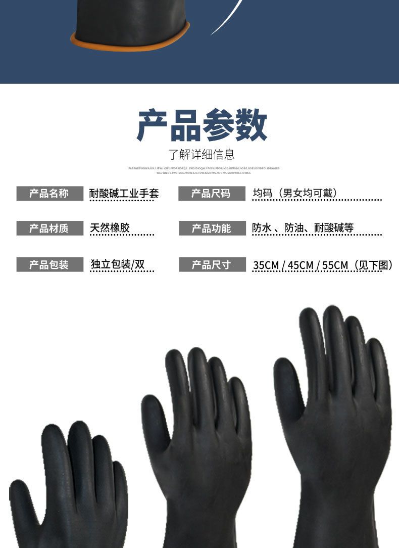 rubber acid and alkali resistant gloves industrial chemical anti-corrosion anti-fouling waterproof thickened and lengthened latex wear-resistant labor protection gloves 35 CM industrial acid and alkali resistant gloves (1 pair)