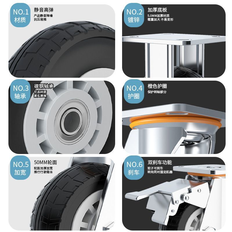 universal wheel collection, universal, silent, light and heavy duty, rubber stall universal trolley wheel collection, light 5 inch +gold rubber wheel [directional]