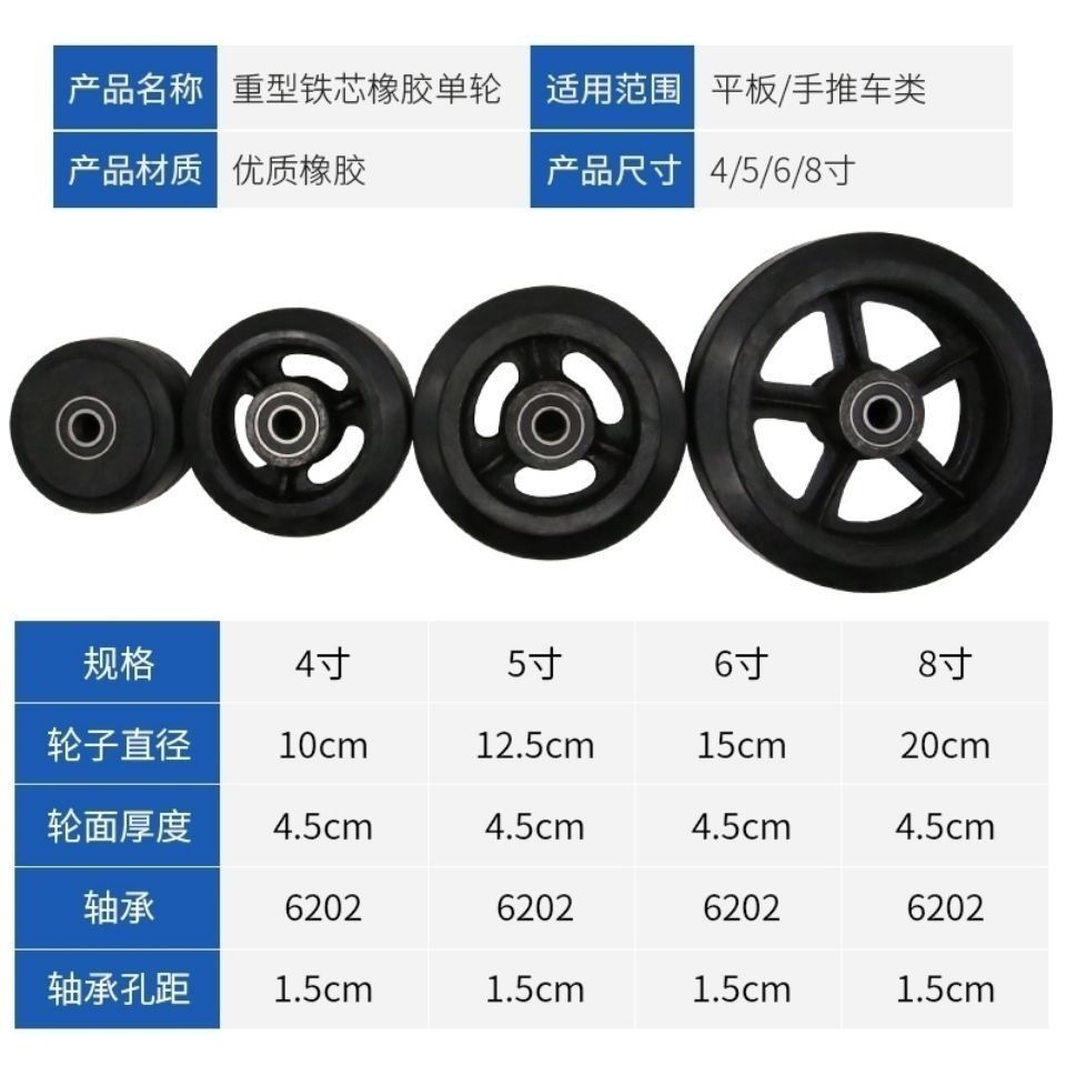 iron core rubber wheel 3456 inch 8 inch silent solid rubber industrial heavy duty wheel trolley flatbed trailer wheel flat medium 3 inch gold glue one with accessories