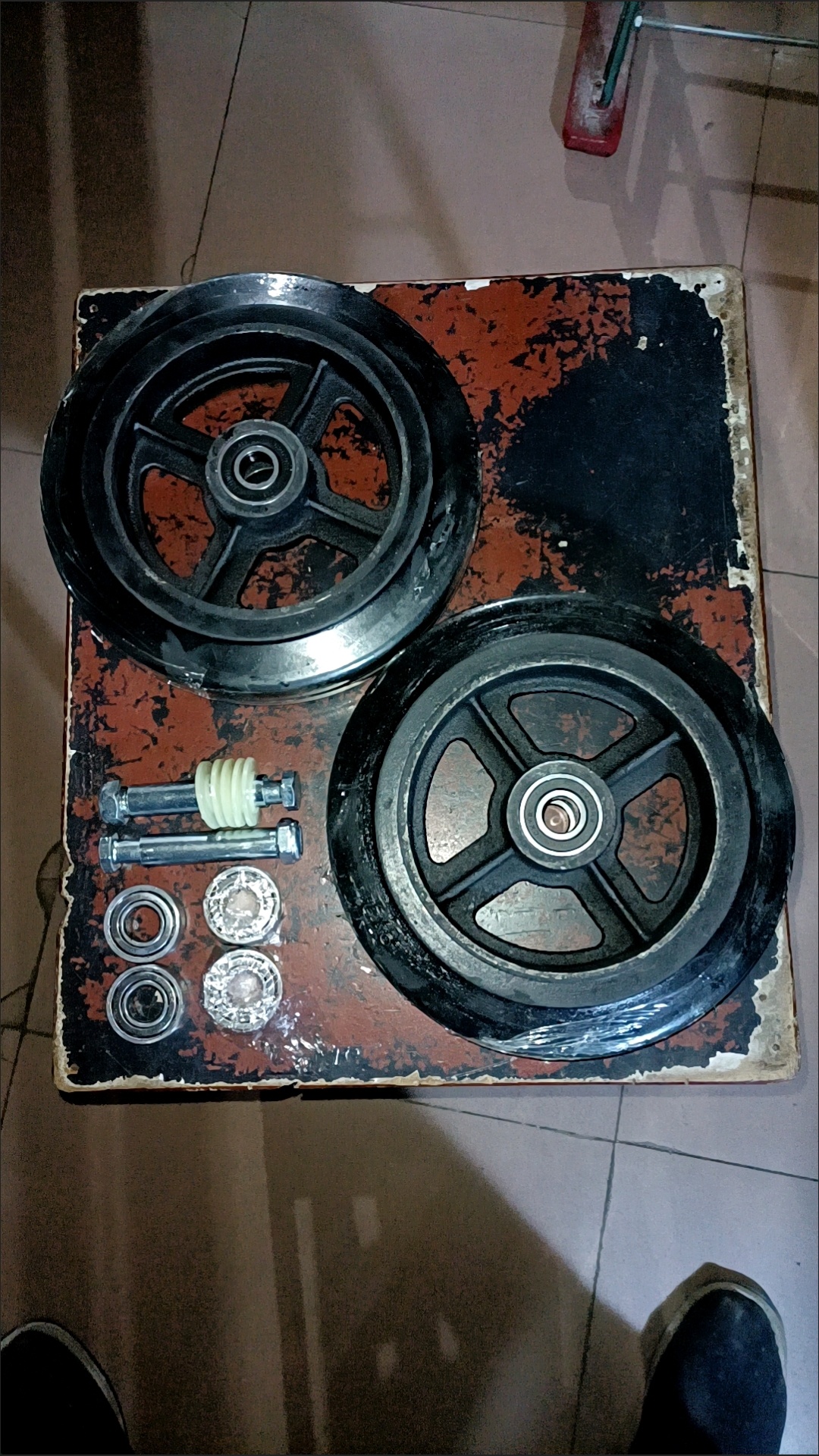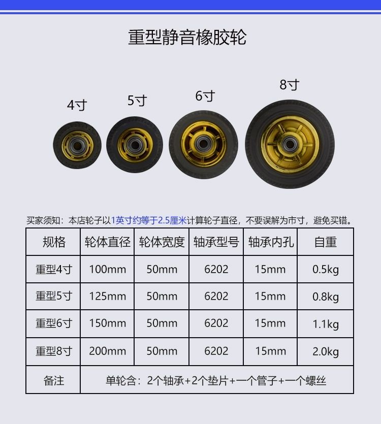 6寸铸铁胶轮收到了,厚实、做工好,配件全。