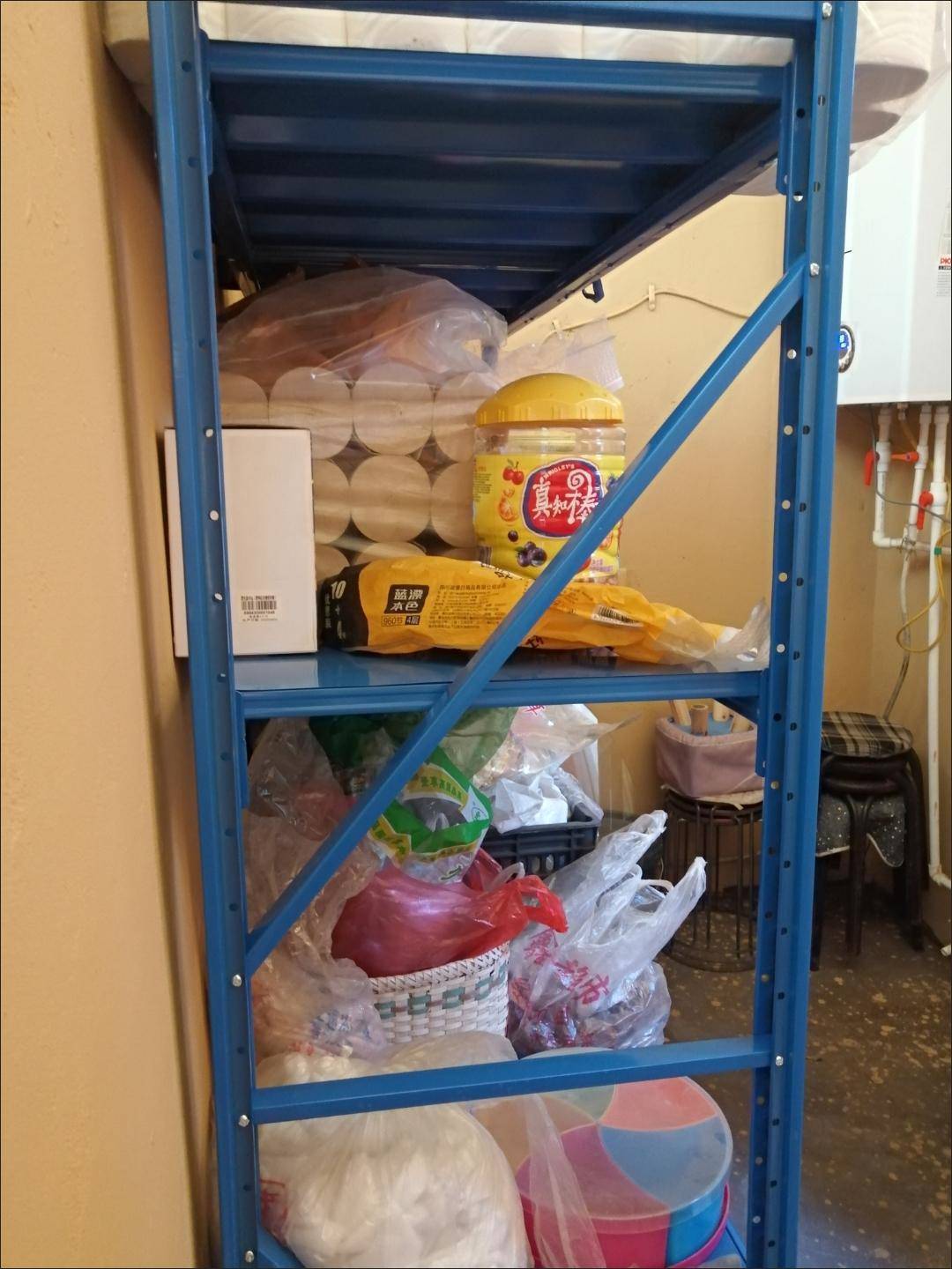 货架很好,组装需要用电起子就省力点。架起来还是很威武的。也比较实用。一个140的揪边上站上去架子还是很稳的。整体性价比可以。