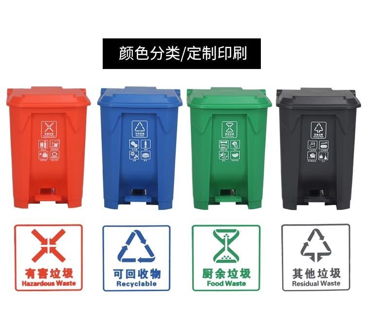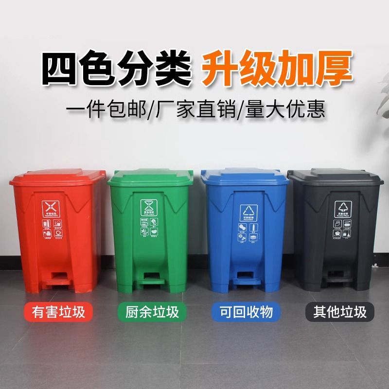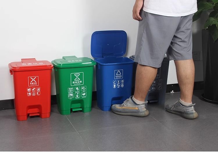 classification trash can with lid foot-operated large capacity commercial foot-operated outdoor large trash can office enhanced version +15green pedal trash can
