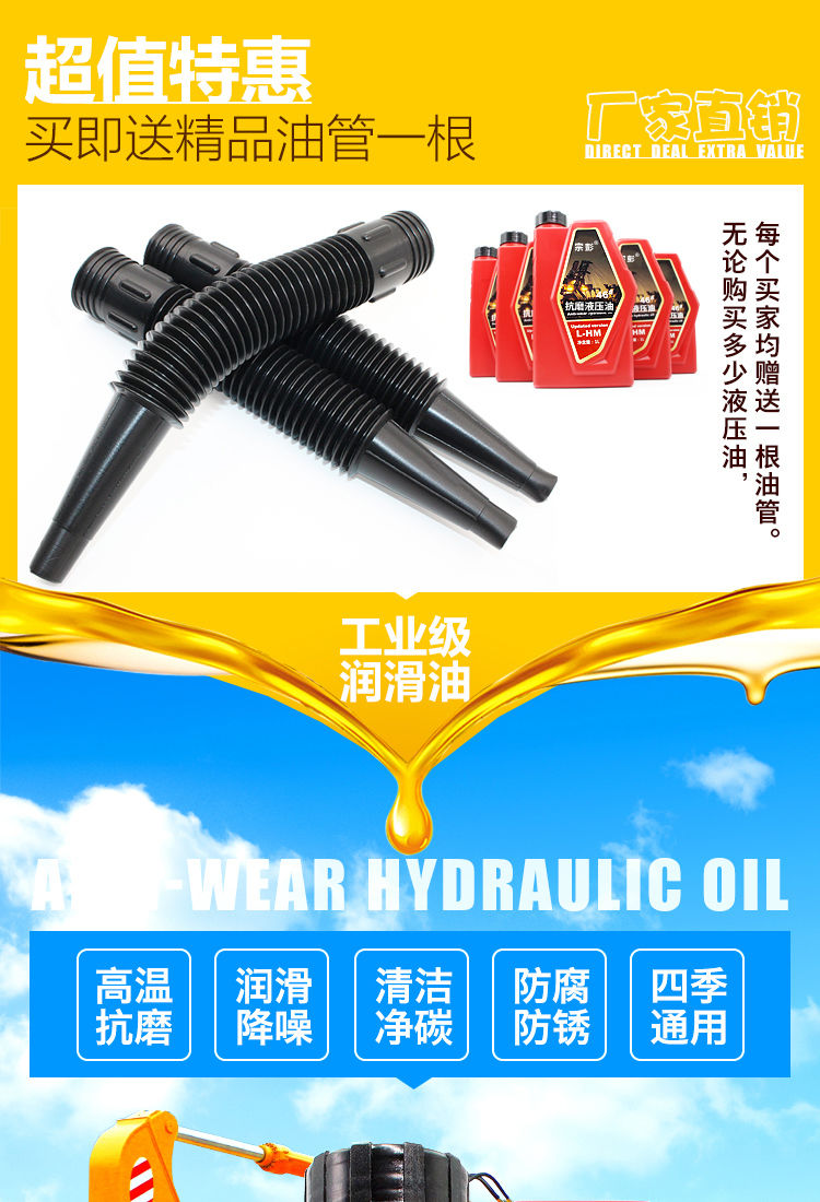 jack horizontal 46 hydraulic oil hydraulic pliers special lift excavator industrial anti-wear hydraulic oil large bottle one bottle standard +oil pipe
