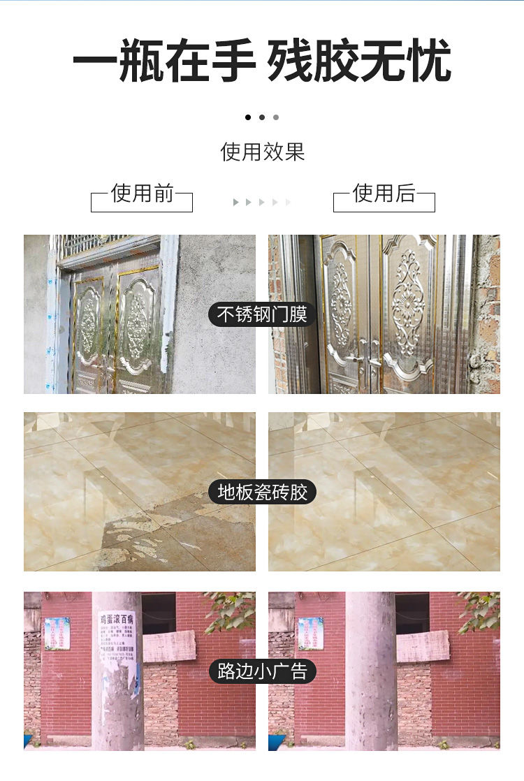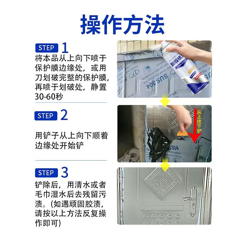 degumming paper agent, stainless steel door and window elevator protective film aging strong remover, aluminum alloy special degumming artifact 1 bottle with tools [paint damage attention]