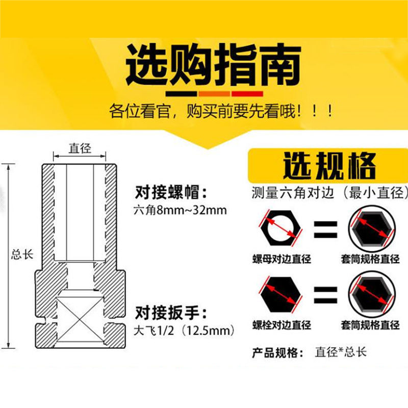 electric wrench socket head small air cannon 1 /2dafei extended hexagon socket screw wrench auto repair tool set electric board socket (8-19 ten-piece set) boxed