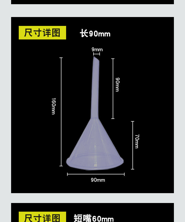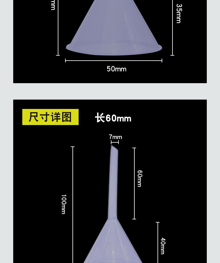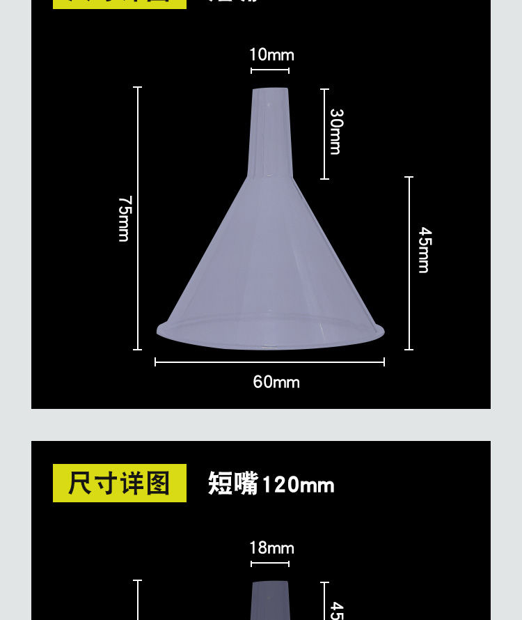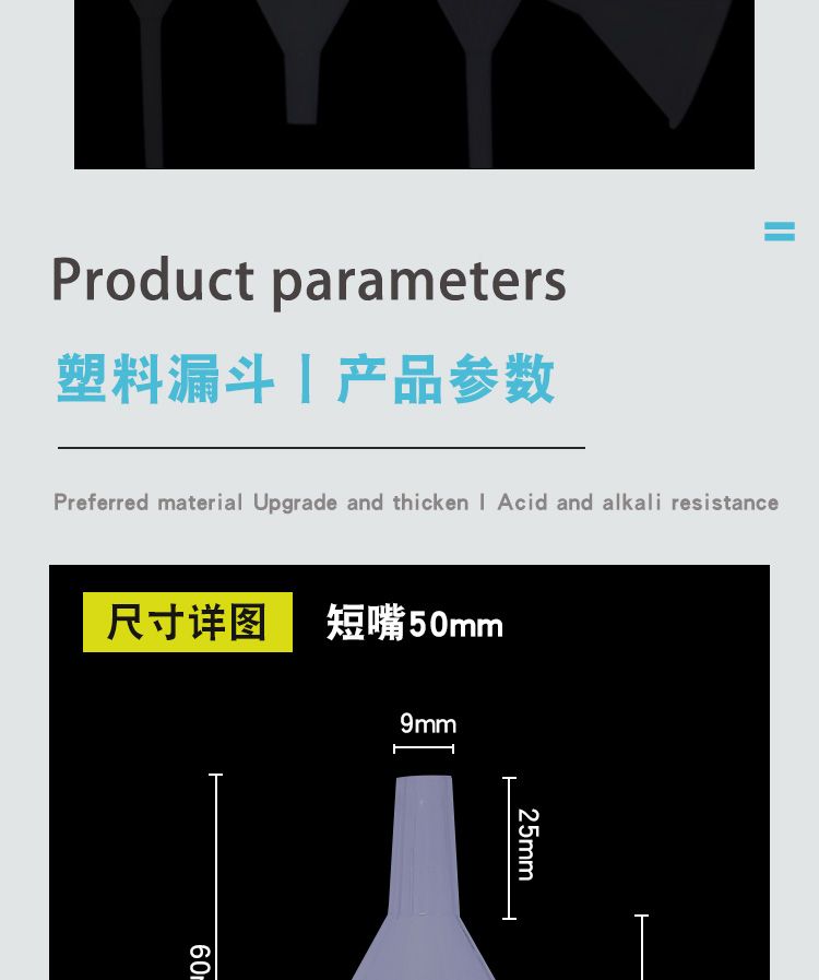 plastic funnel large and small funnel PP leak 60 mm75mm90mm filling funnel short mouth 50 mm