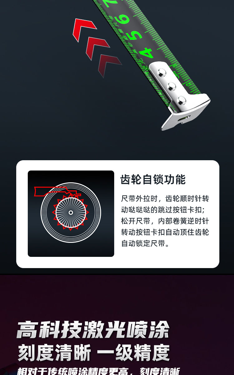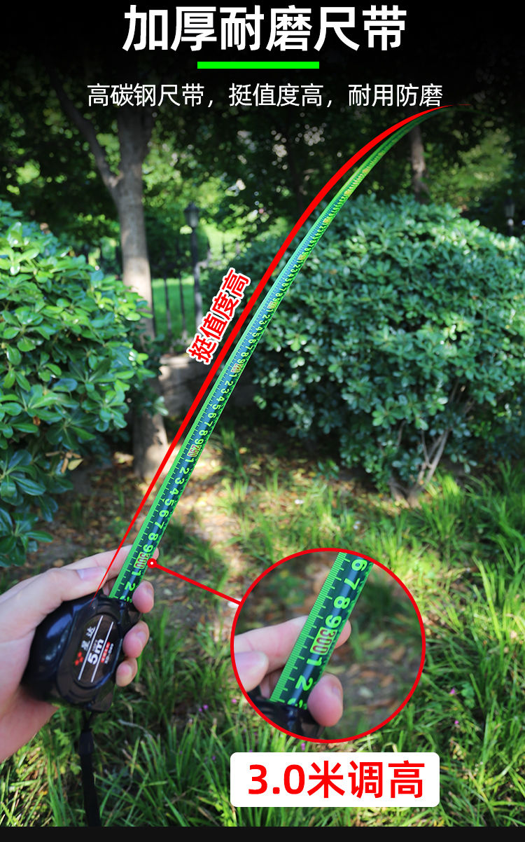 尺寸很规范,刻度很清晰,设计美观,经济实惠,手感舒适,回弹力强,尺条可以挑起3米,非常不错,还会再来购买