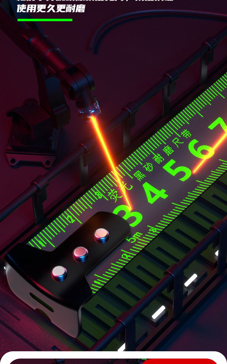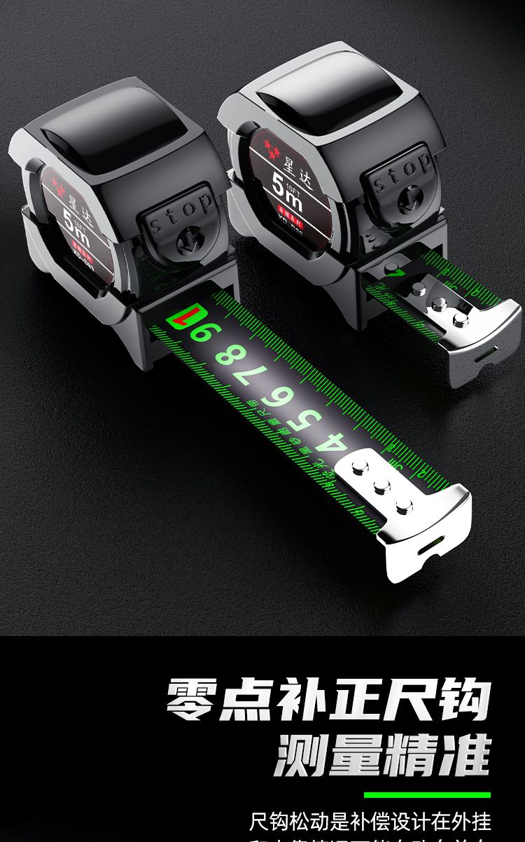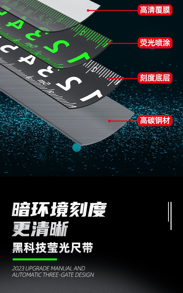 black technology fluorescent ruler with high-end tape measure 5 meters anti-fall 7.5 meters 10 meters thickened durable steel tape measure meter ruler 5 meters 19 wide [flat pick 2.3 meters fluorescent ruler]