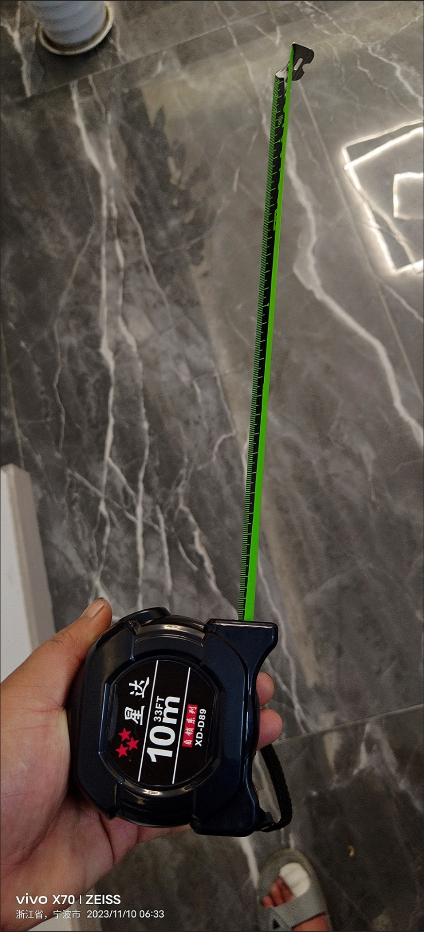 家里原有一把5米的卷尺(黄色的),质量很好,也是在拼多多上买的,已经是用了几年了,这次买的是黑色的,是10米的,盾量同样的好,买了值得!