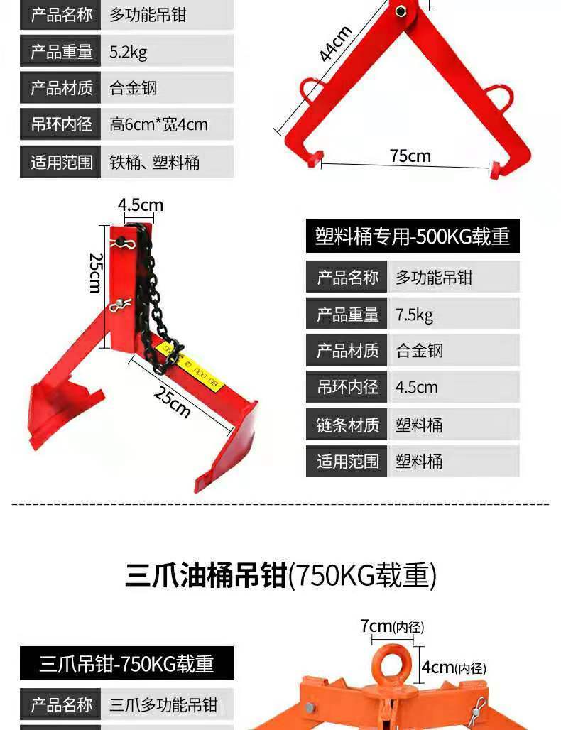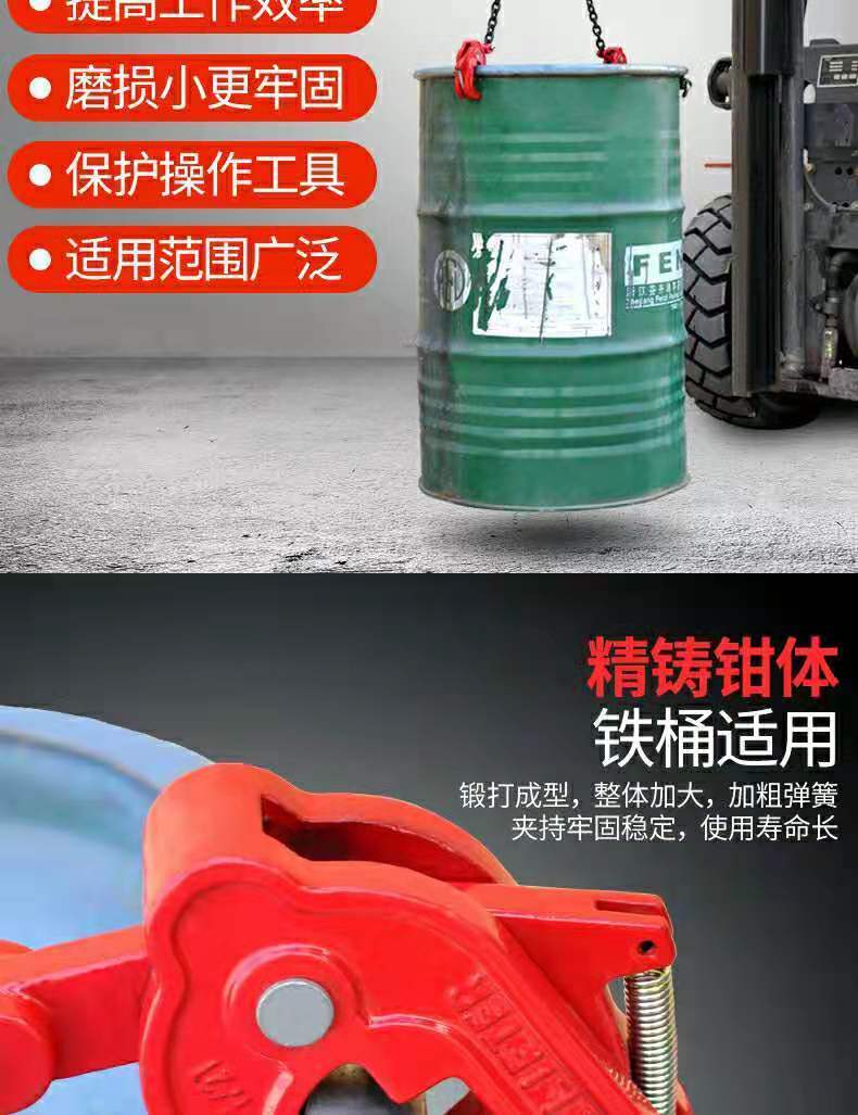 oil drum lifting clamp lifting clamp forklift special hook oil drum clamp hook lifting tool barrel clamp grab hook unloading oil drum tool precision casting 0.5 T( iron bucket for hook