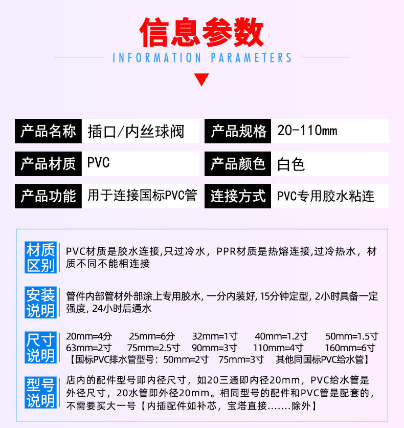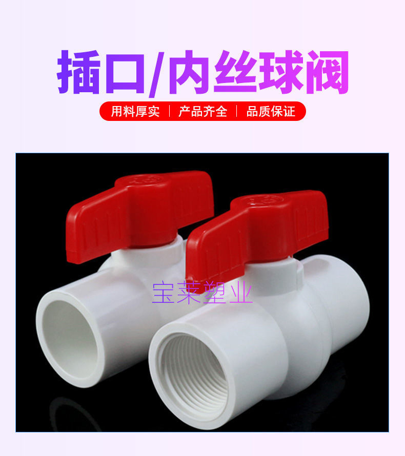 PVC ball valve water pipe valve switch screw plastic joint adhesive DN20 25 32 40 50 6320mm【2 indivual
