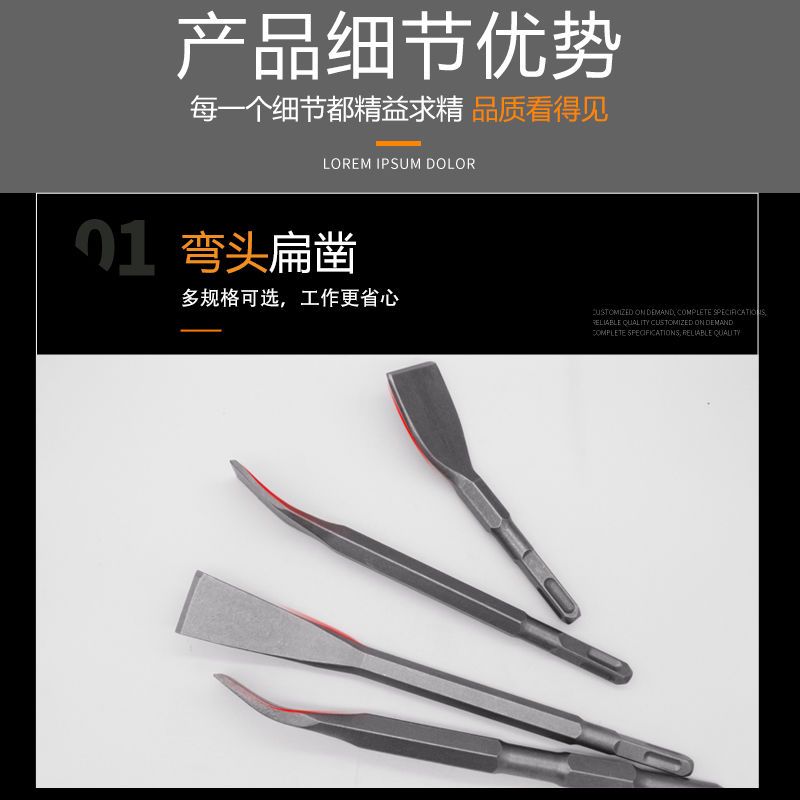 electric hammer impact drill bit square handle hexagonal handle bent flat chisel pickaxe electric pickaxe head shovel super wide chisel slot through wall drill square handle 110 X30(5 stick packaging)