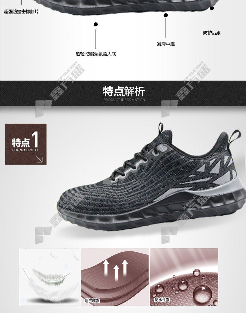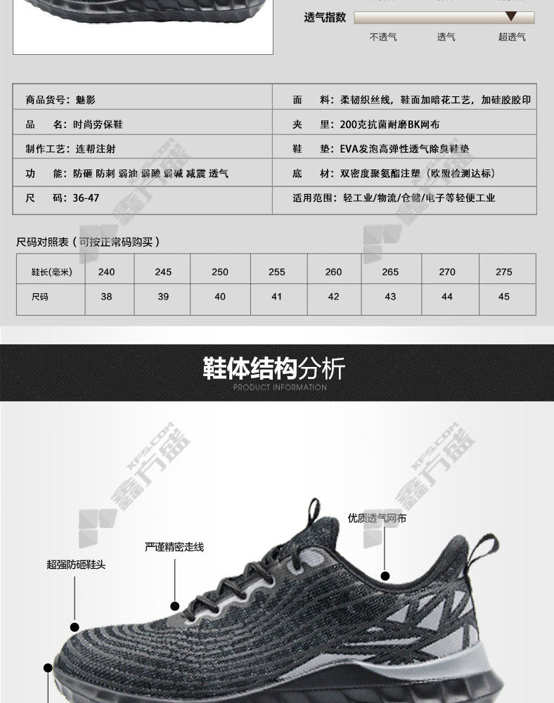 mountaineering phantom anti-smash and anti-puncture safety shoes size 37 black 36/black