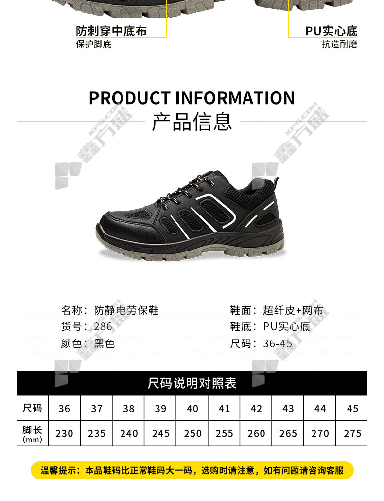 old housekeeper microfiber leather mesh upper pu solid bottom anti-smash and anti-stab anti-static work shoes size 37 286 size 36 /286