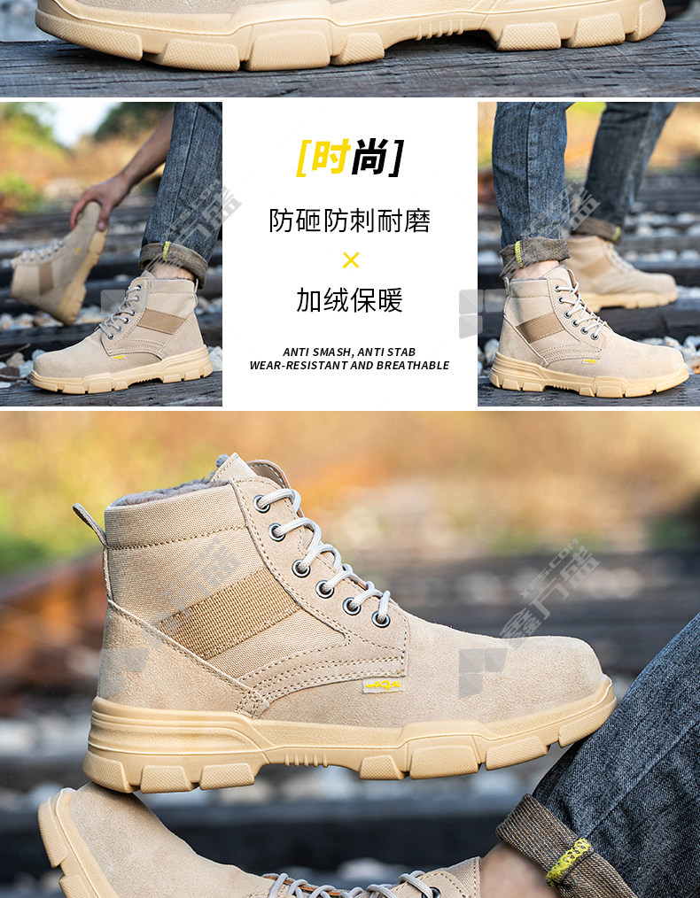 old housekeeper suede leather pu solid bottom high top plus velvet cotton shoes anti-smash and stab work shoes size 44 287 36 /287