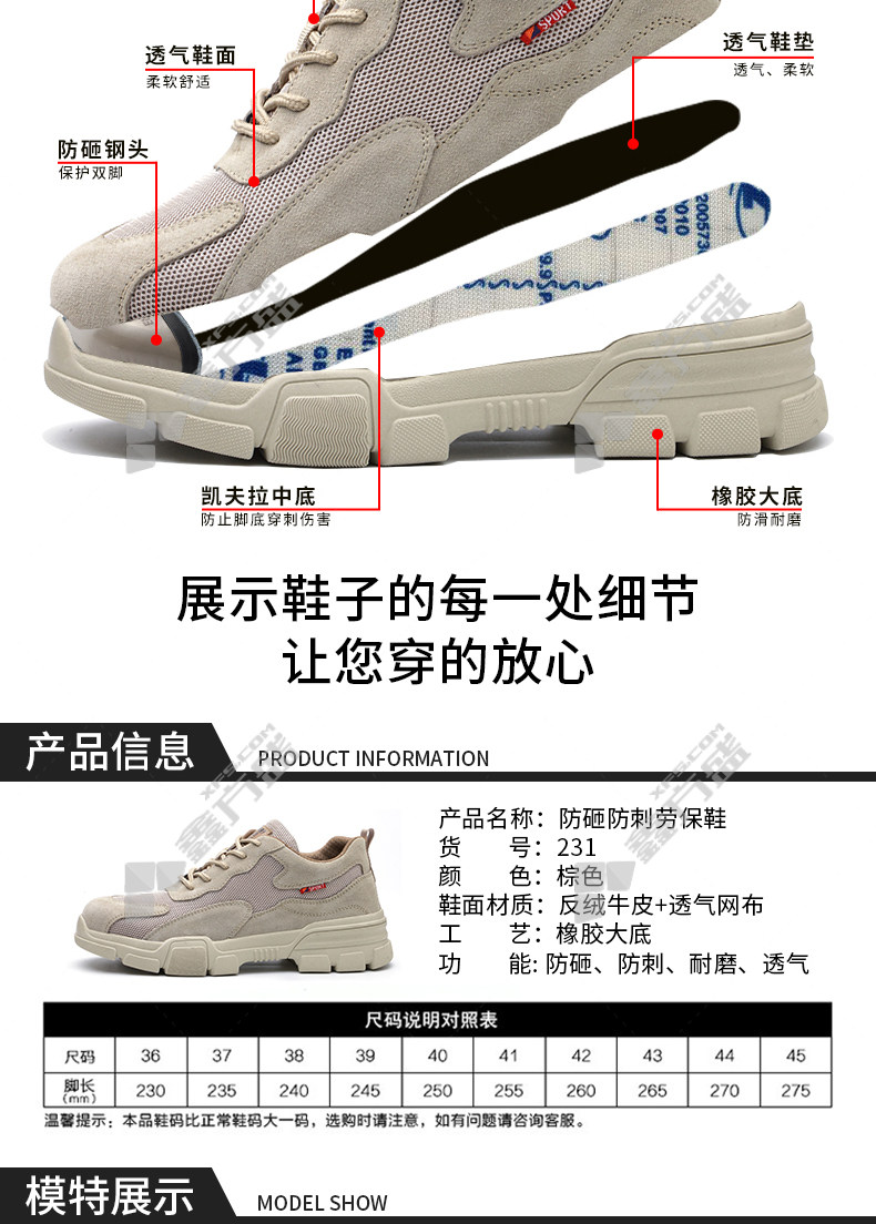 lao guanjia suede leather breathable mesh upper rubber outsole anti-smash and anti-stab work shoes size 36 231 35 /231