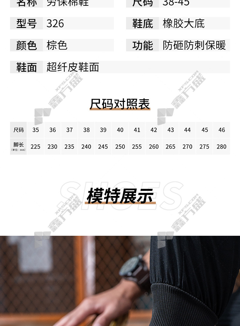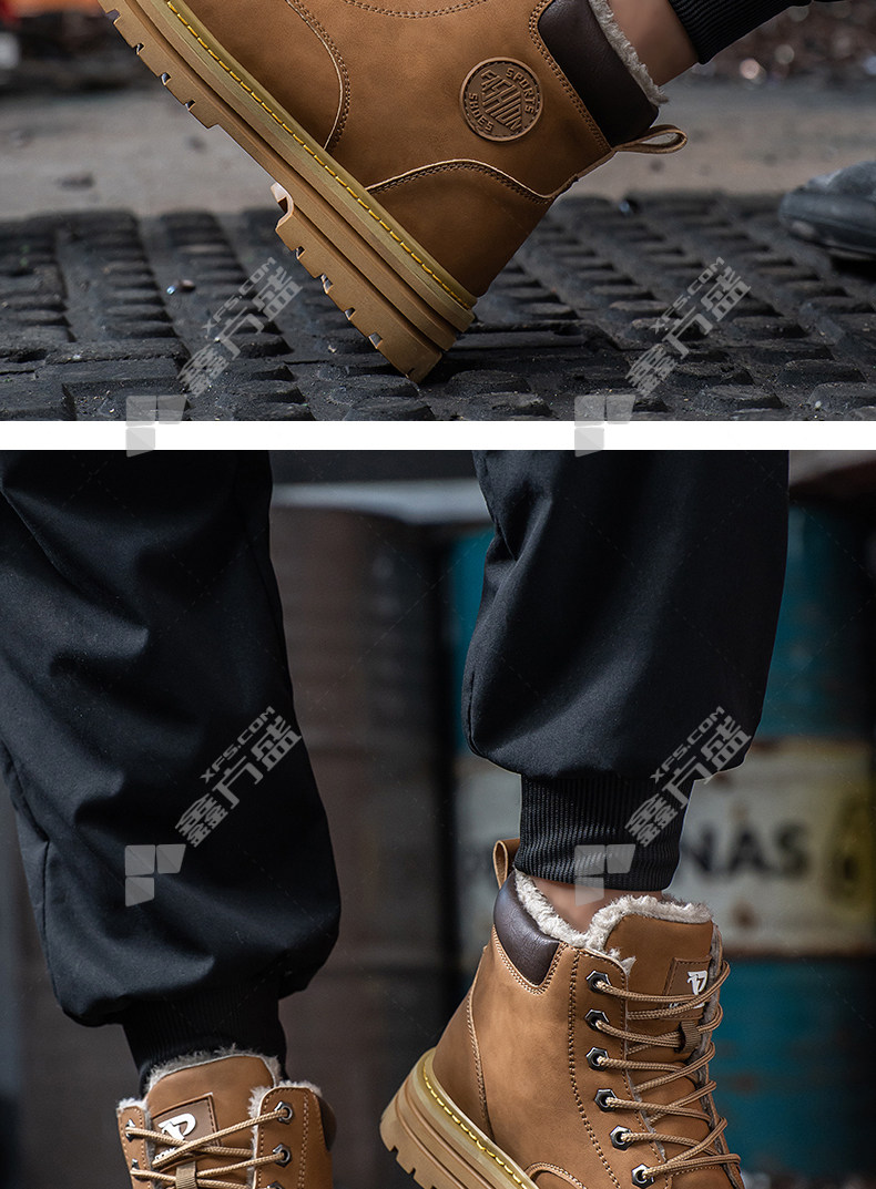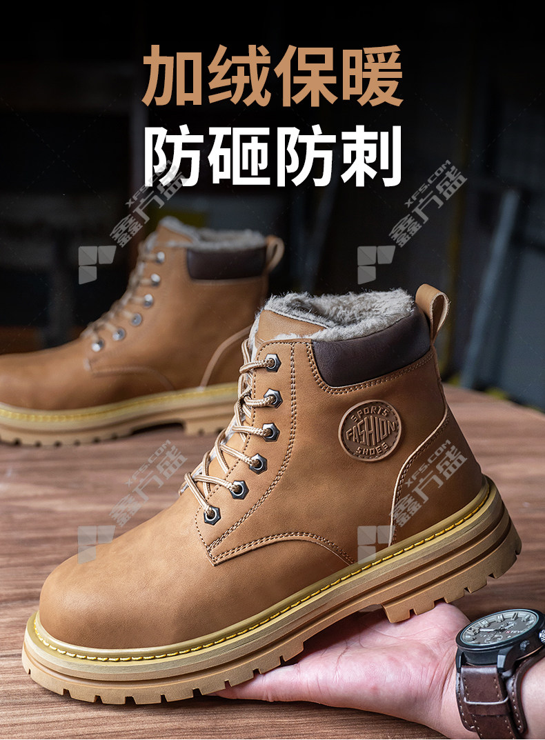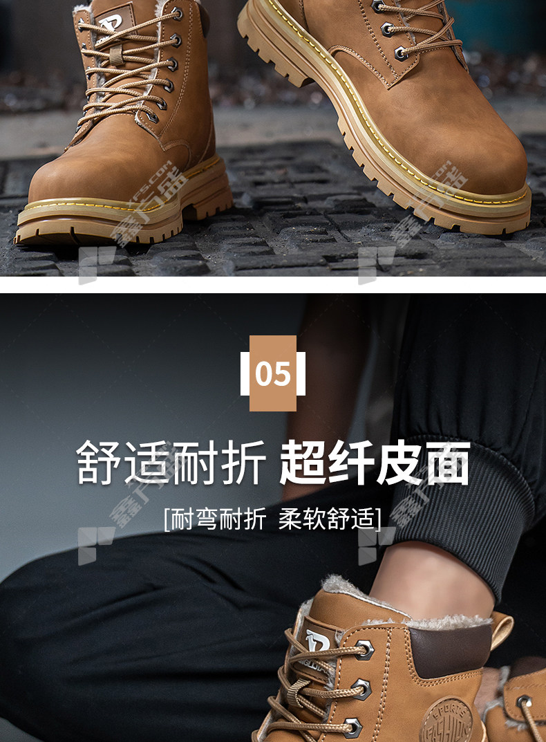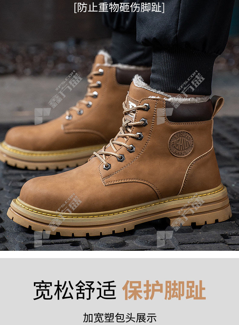 lao guanjia microfiber leather upper rubber outsole anti-smash and stab-proof warm high-top work shoes size 45 326 37 /326