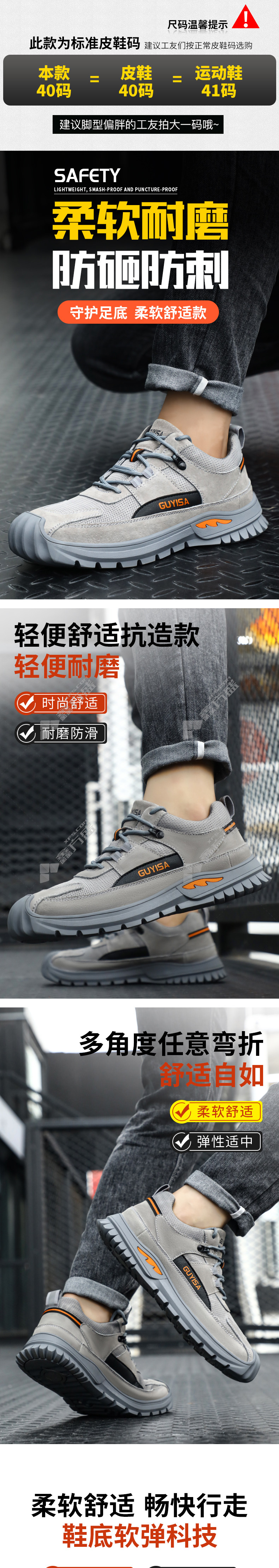 guisa 0255 four seasons anti-smash and anti-puncture safety labor shoes 42 size gray 0255 37 size gray /0255