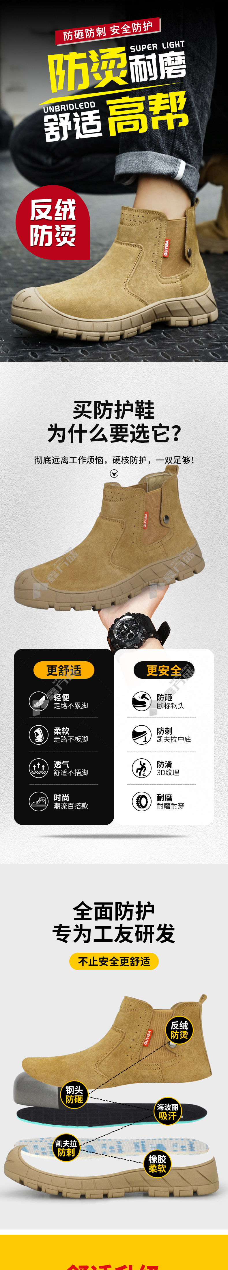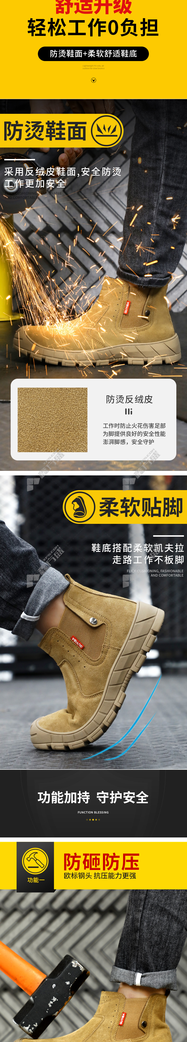 guiza 0233 YW four seasons suede welder anti-smash and anti-puncture labor shoes 46 code brown 0233YW 37 code brown /0233YW
