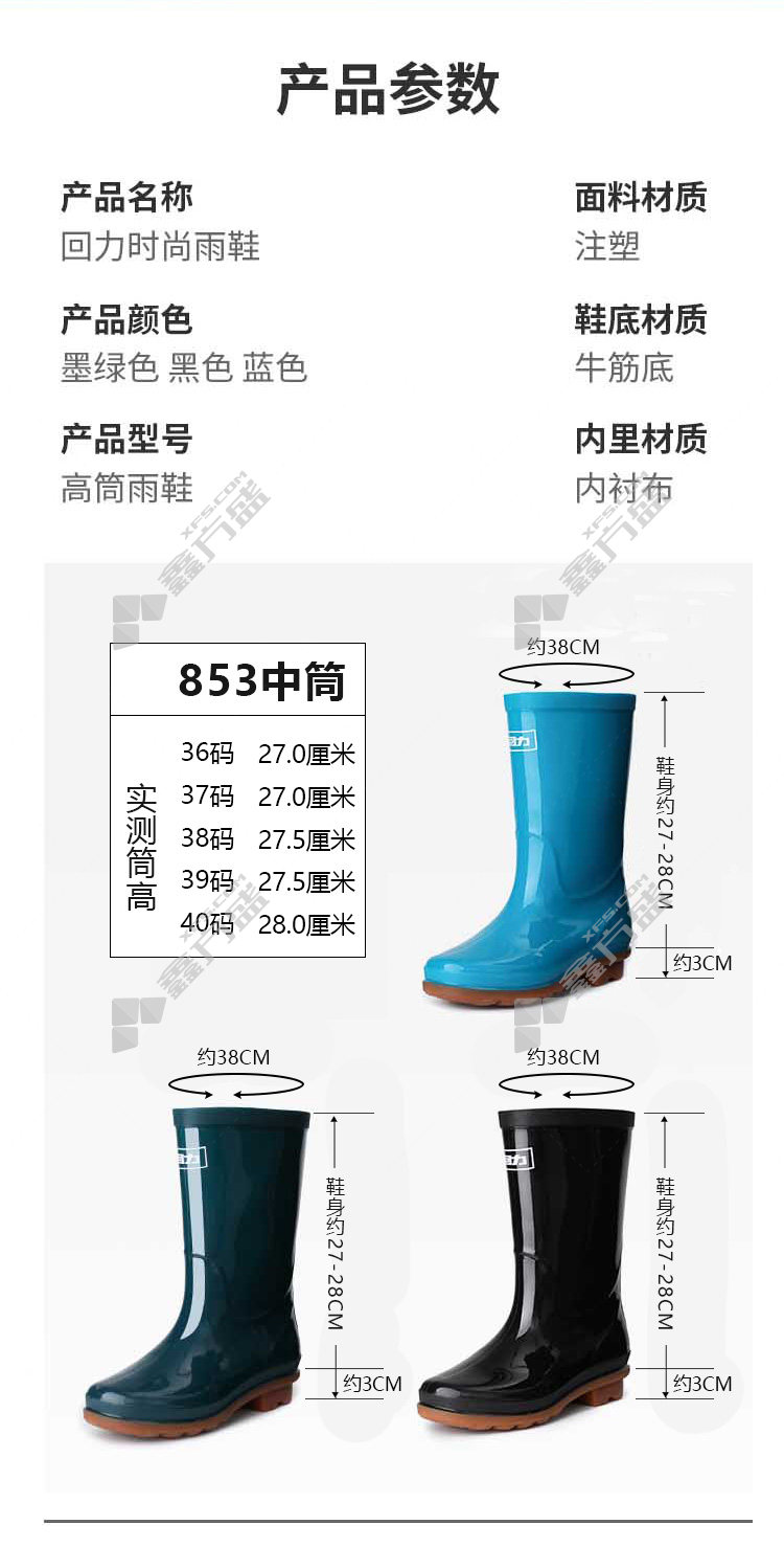 huali 853 women's tendon sole mid-tube rain boots 853 39code black 853 /36code /blue