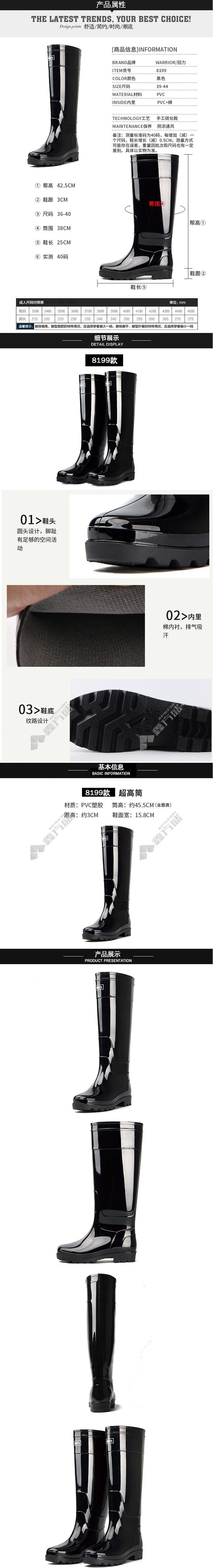 huali 8199 ultra-high rubber rain boots 8199 44code black 8199/39code /black