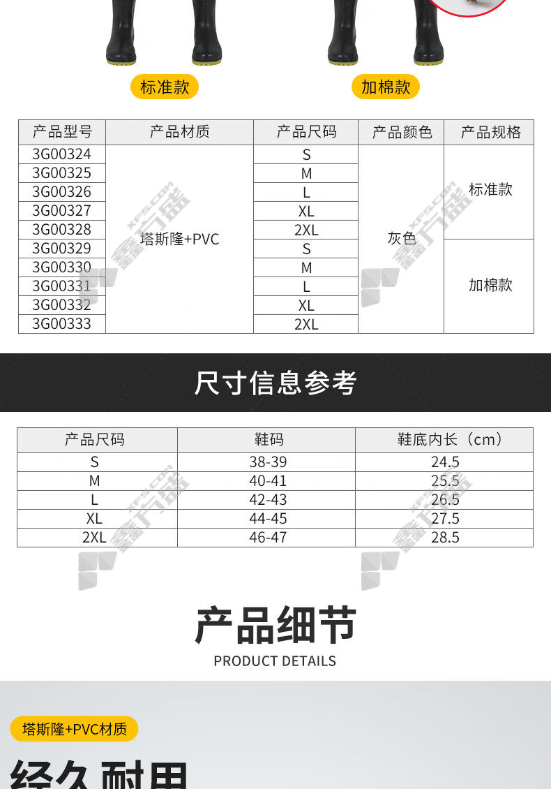 ansery wear-resistant anti-slip extended over-the-knee rain boots 3 G00327 XL code black gray 3 G00324/S code /black gray