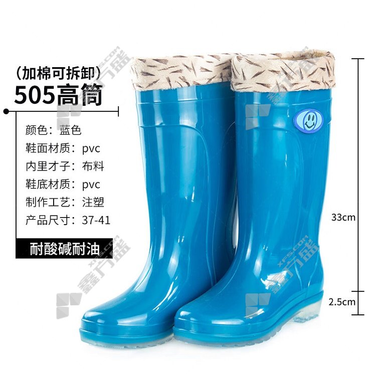 fei naisheng 505 waterproof, non-slip, acid and alkali resistant PVC rain boots FNS-04489 38code high-top shoes blue FNS-04488/37code high-top shoes /blue